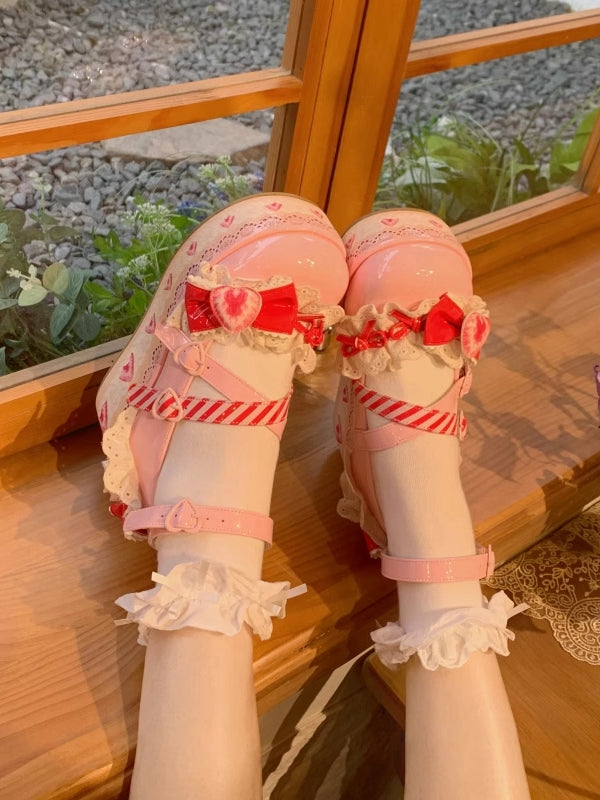 ラズベリーストロベリーケーキピンクのスイートロリータプラットフォームメリージェーンシューズ