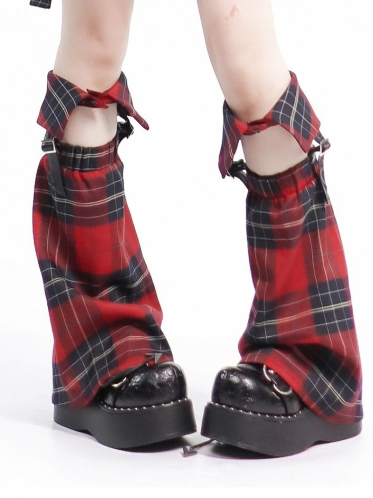 赤と黒のチェック柄レッグウォーマー