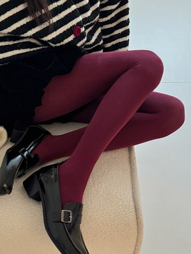 赤とダークレッドの可愛らしいタイツは、厚手で保温性も抜群。寒い季節も暖かく、スタイリッシュに過ごせます。