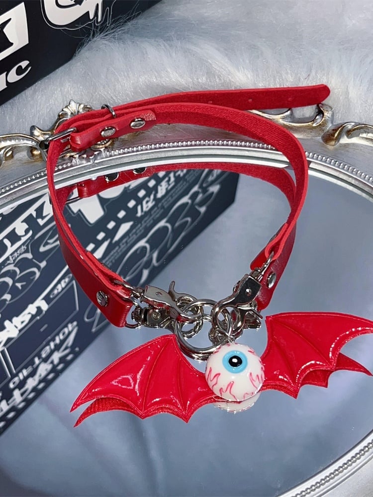 コウモリの羽根が付いた赤い目玉ペンダントパンクチョーカー