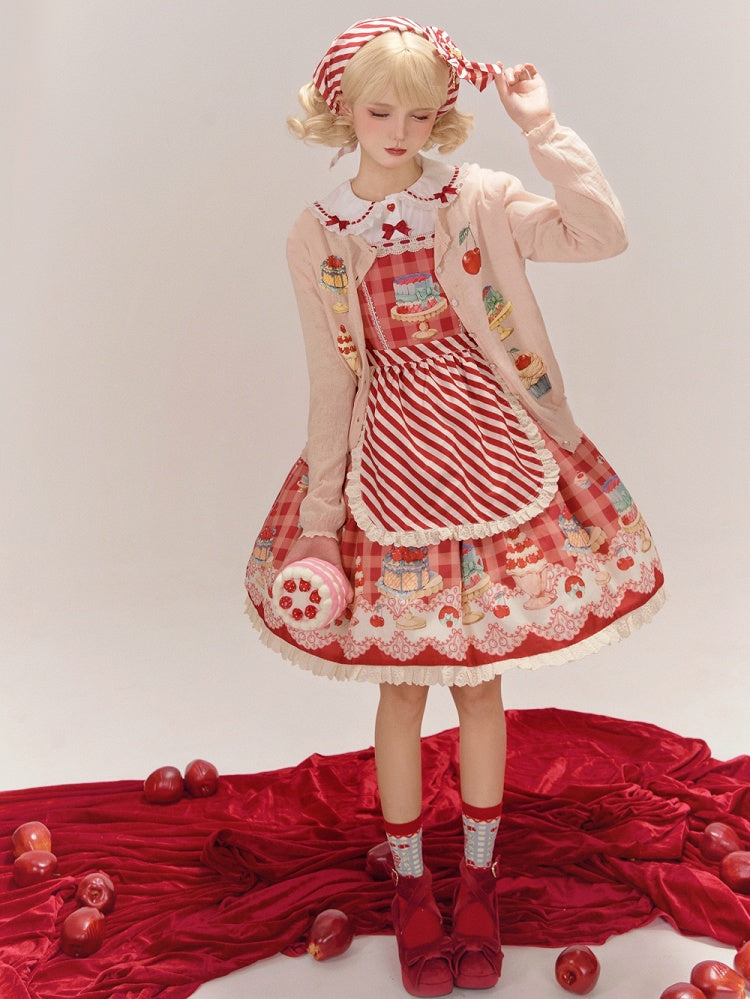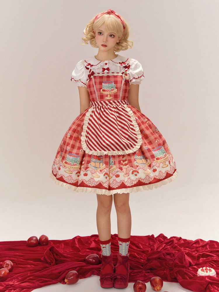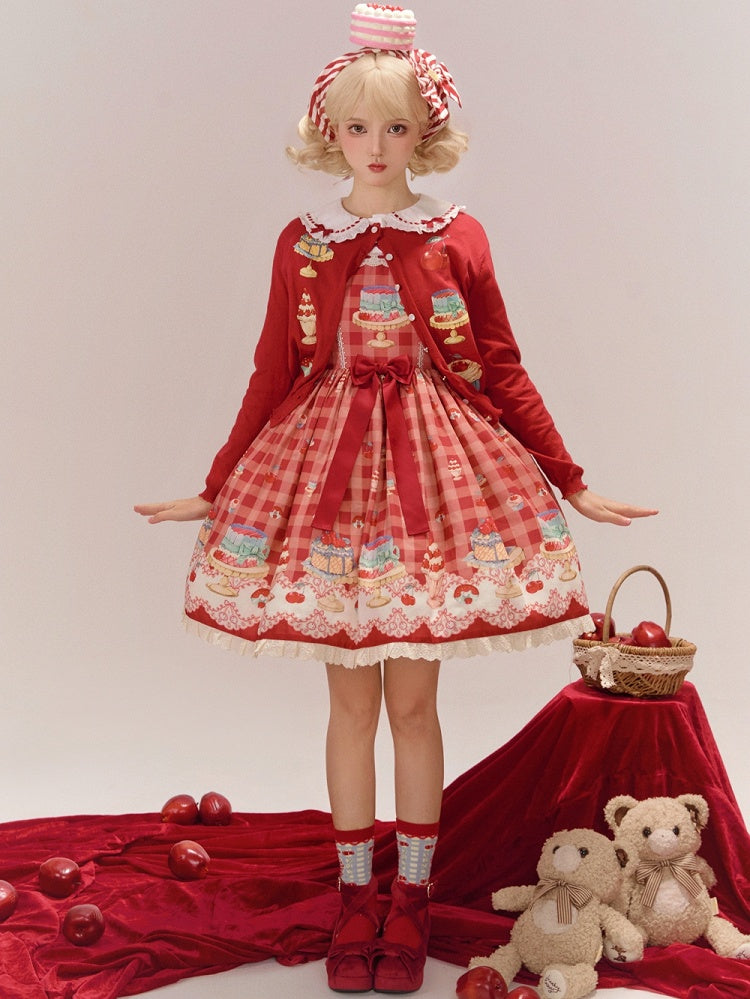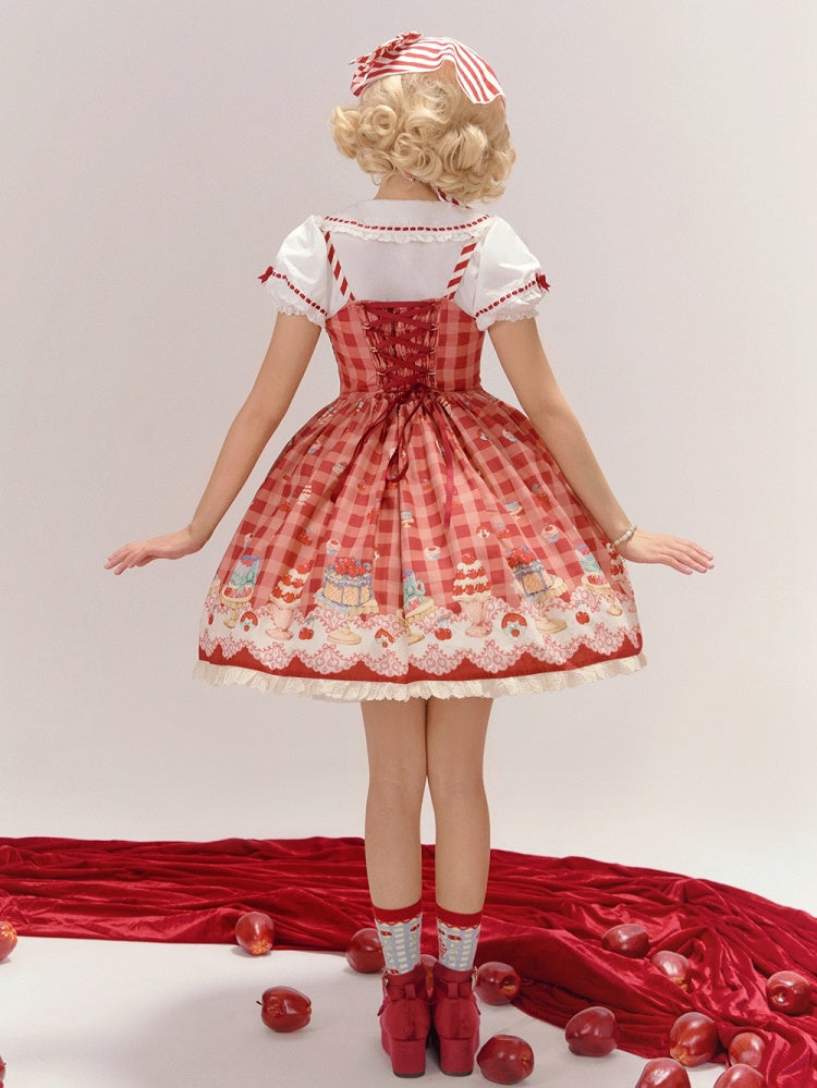 レッドギンガムチェック柄チェリー&デザートスイートロリータジャンパースカート
