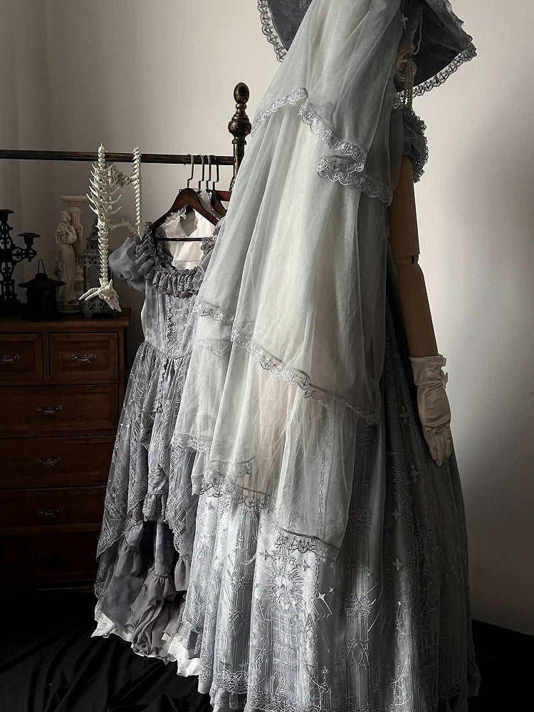 青と白のオールドスクールロリータファッションドレス 蝶結びディテール JSK セット