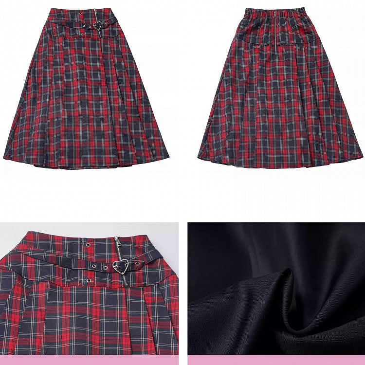 レッドハートバックルチェック柄プリーツスカート