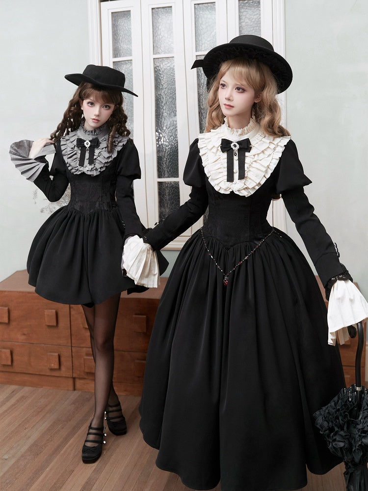 黒と白のオールドスクールロリータファッションドレス蝶結びロリータJSKセット