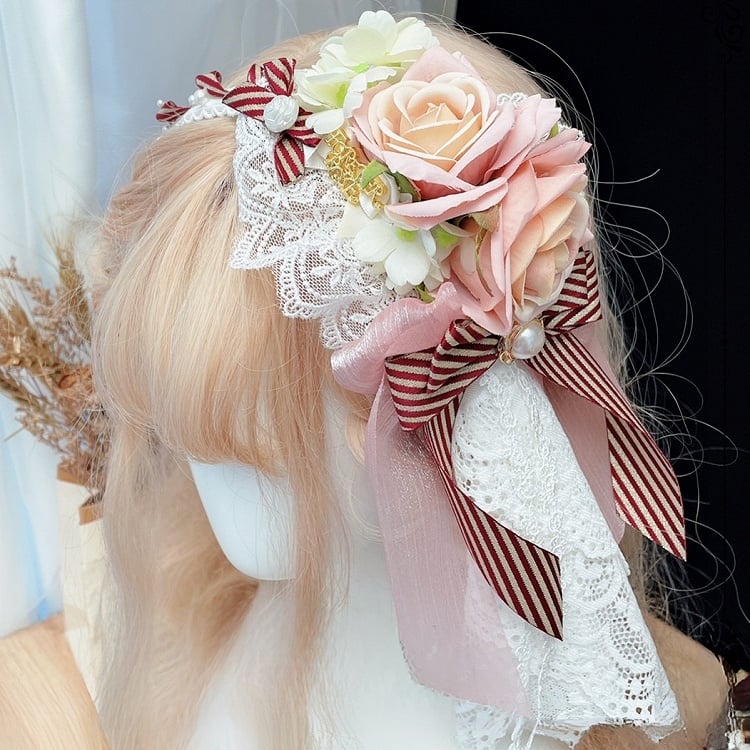 赤とピンクのクリスマスロゼットデザインストライプ柄の蝶結びディテールKC