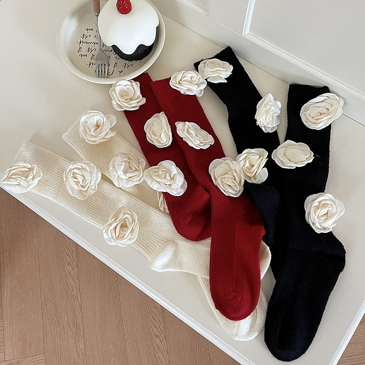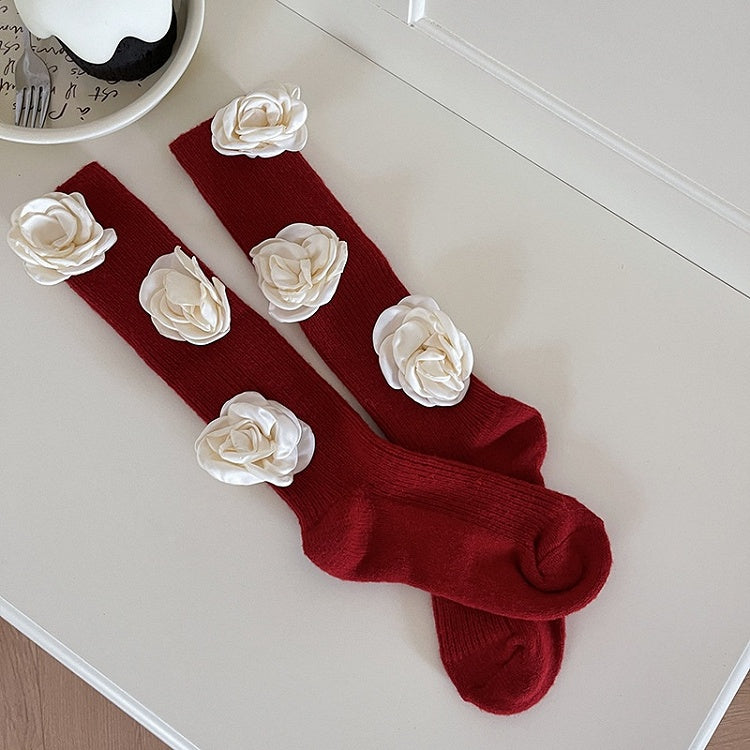 白い椿があしらわれた赤いスウィートカーフソックスは、可愛らしさだけでなく実用性も抜群です。柔らかな素材と美しいデザインが、履き心地の良さとスタイリッシュさを両立。どんなシーンにもぴったりです。どんな装いにも、きっと可愛らしさをプラスしてくれるでしょう。