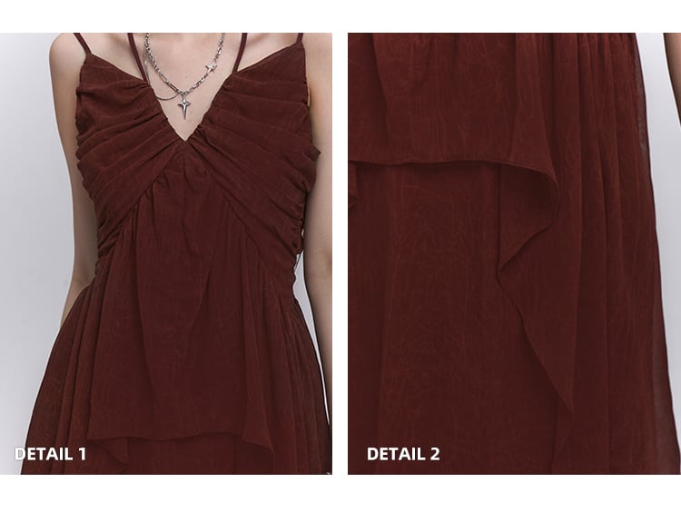 レッド Vネック ヘム ハンカチトップ キャミソール ダーク