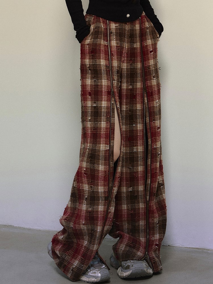レッドジッパー付きストレートレッグカットのチェックパンツで、個性をアピールしましょう。鮮やかなレッドカラーとクラシックなチェック柄が、どんな装いにも遊び心をプラス。ストレートレッグカットとジッパーディテールが、トレンド感とモダンな雰囲気を演出します。快適でスタイリッシュなこのパンツは、ワードローブに欠かせないアイテムです。