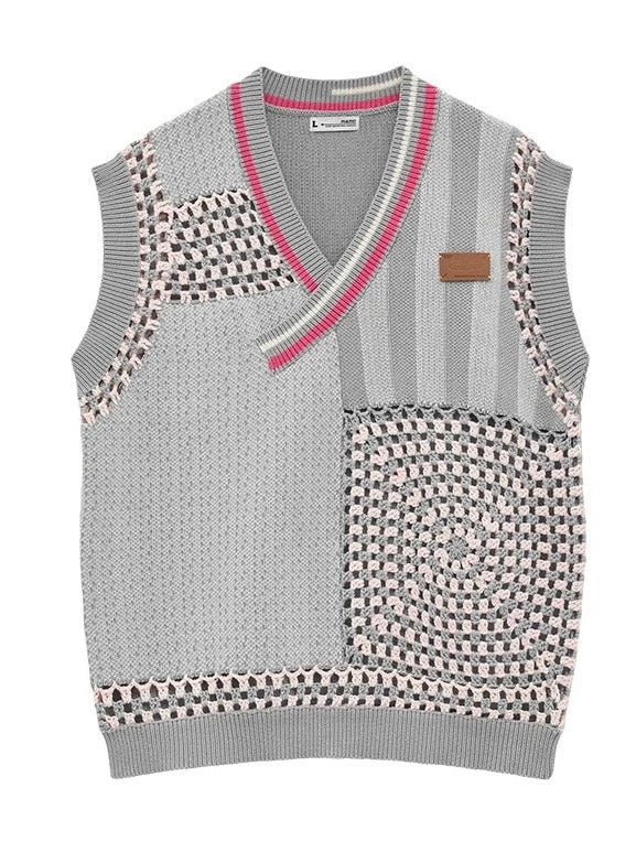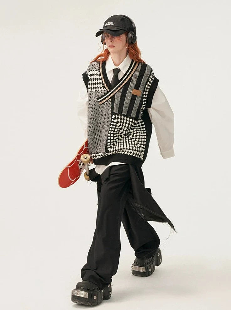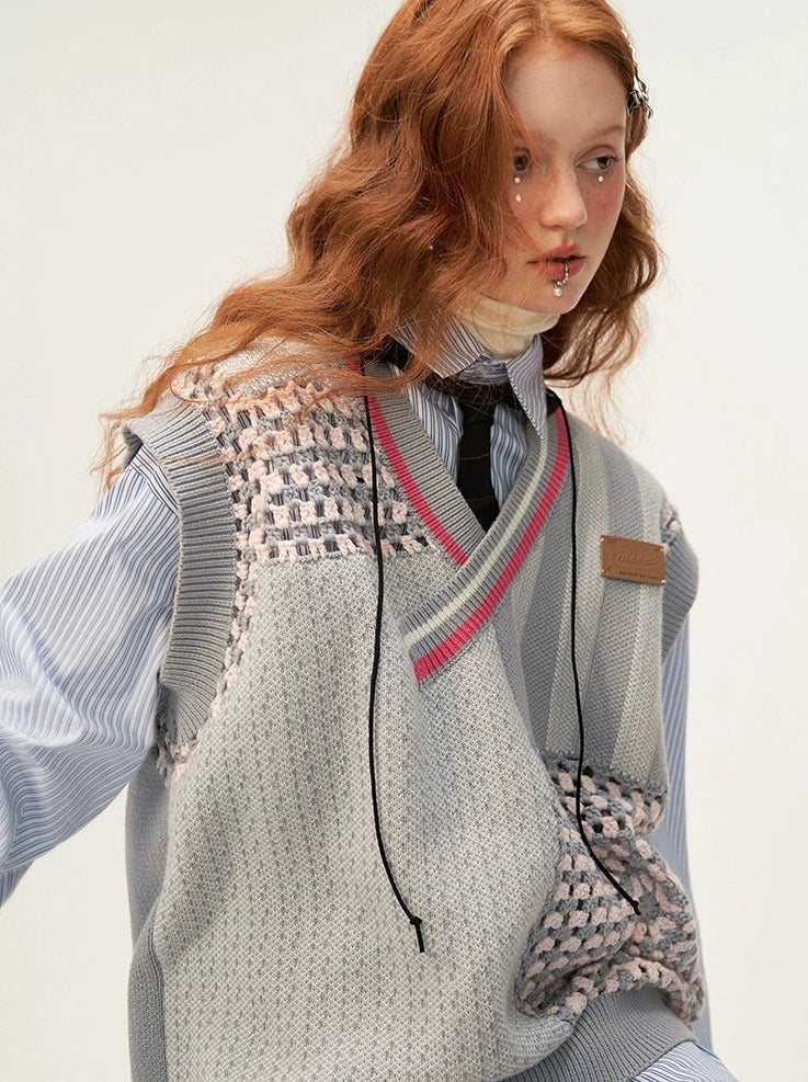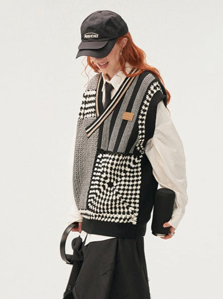 控えめなアシンメトリーベストニットアイテムオーバーモードルーズ