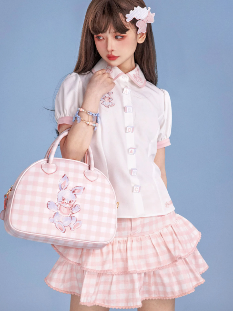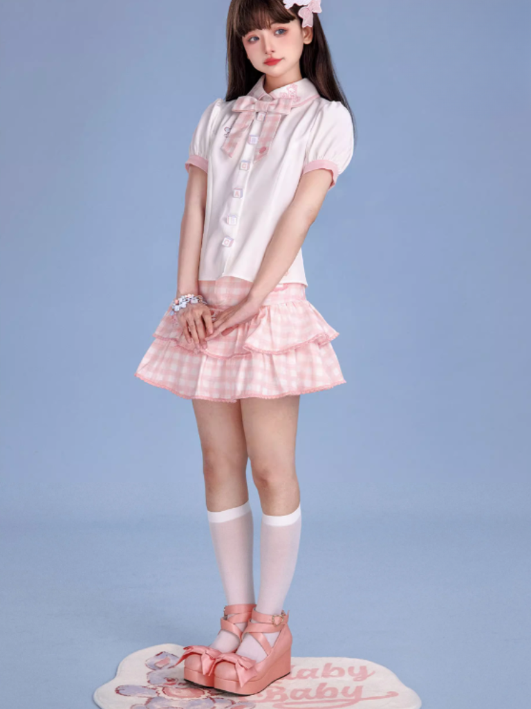 ピンクと白のオールドスクールロリータファッションドレス、蝶結びディテール、ロリータJSKセット