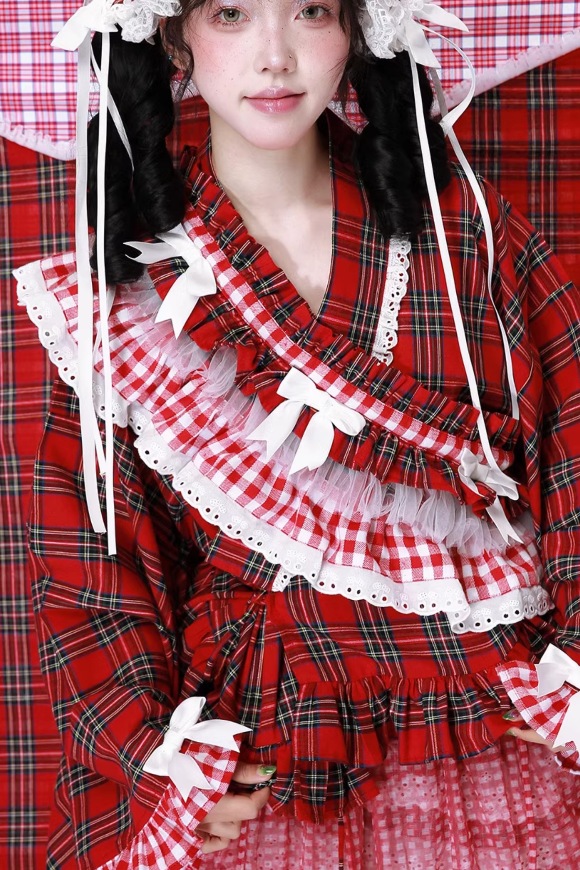 ピンクと白のオールドスクールロリータファッションドレス、蝶結びディテール、ロリータJSKセット