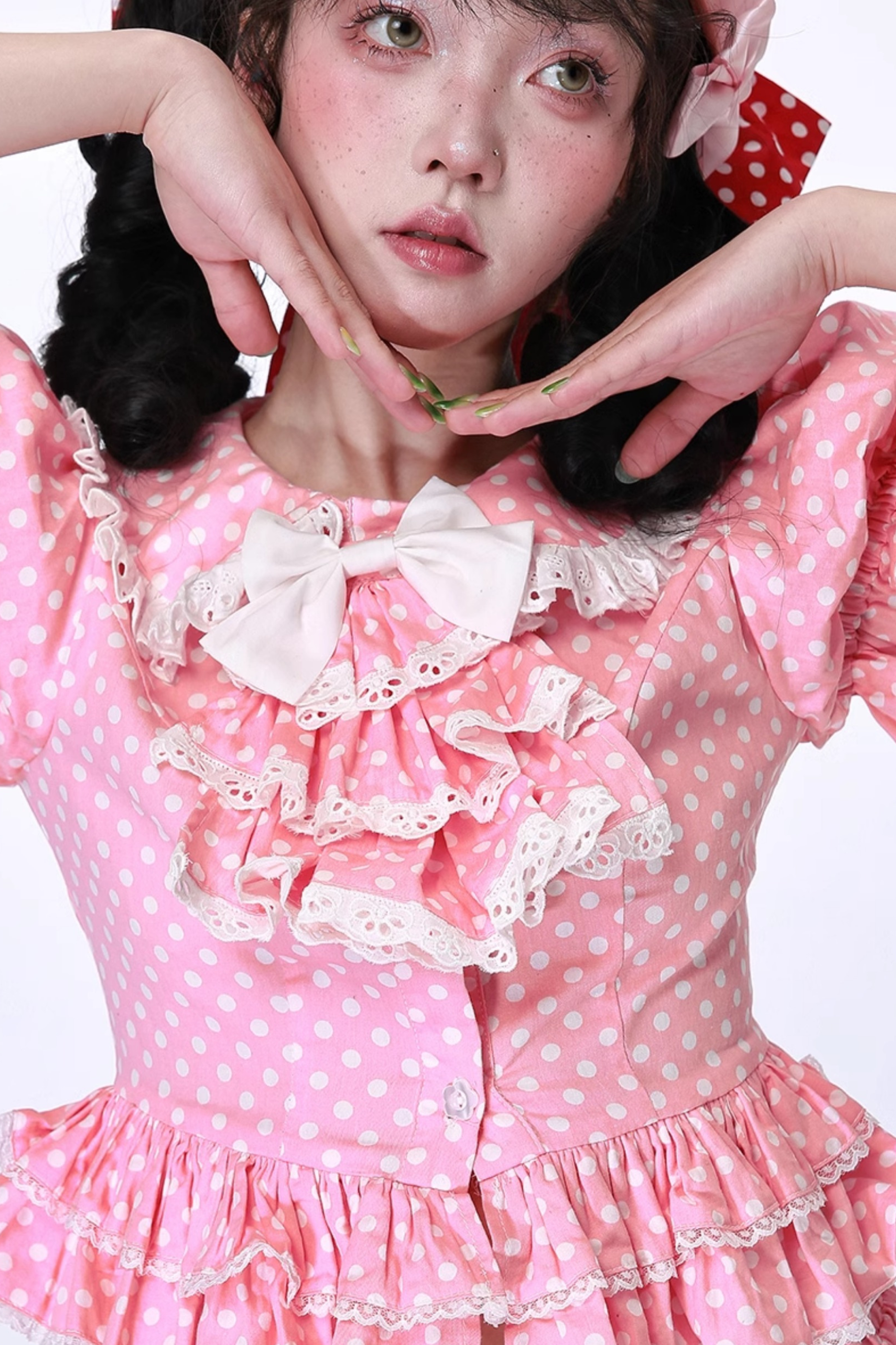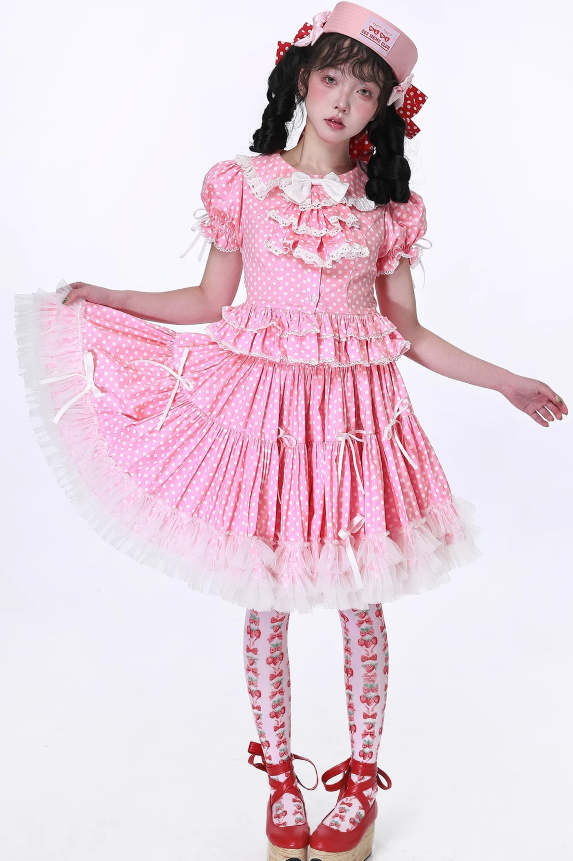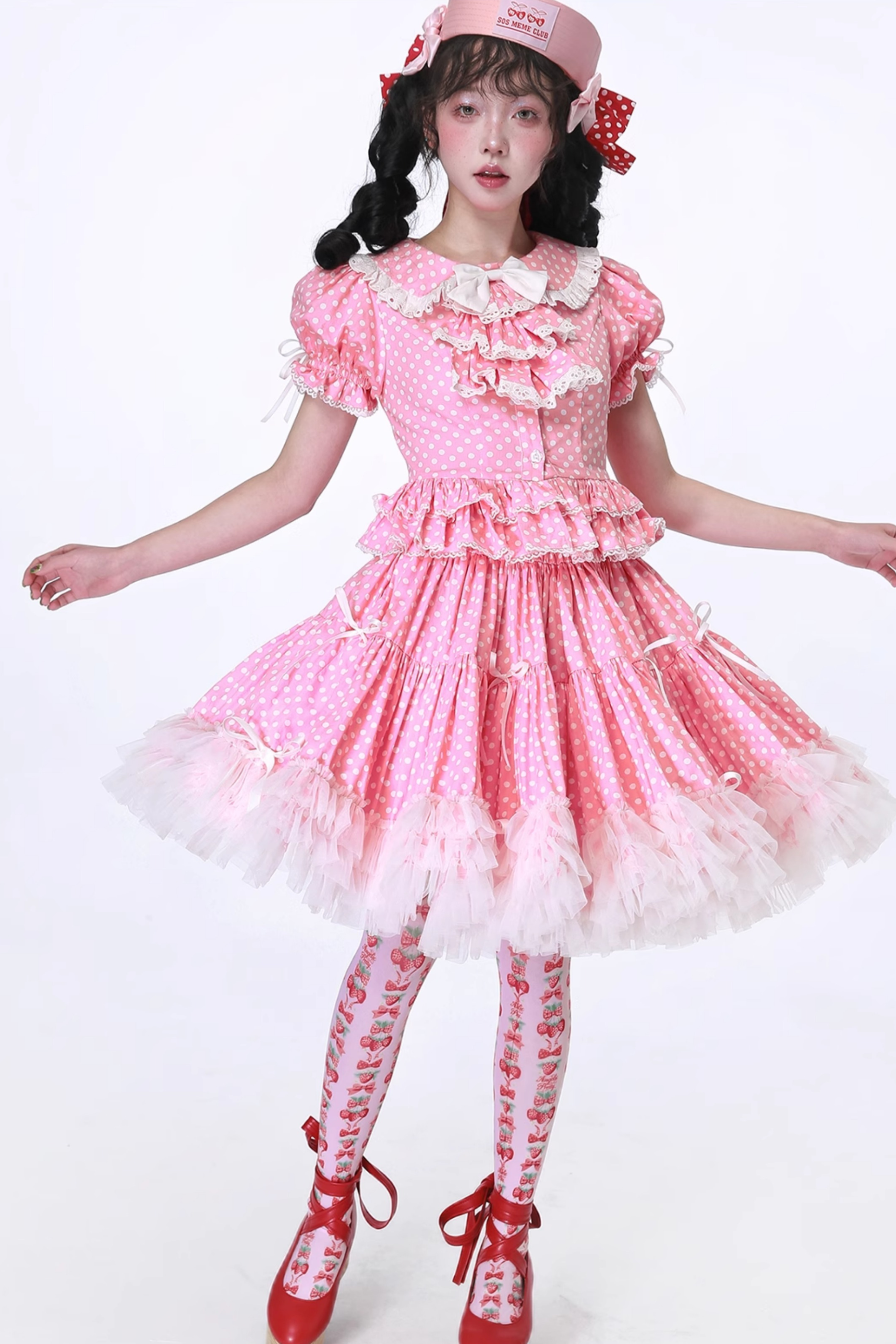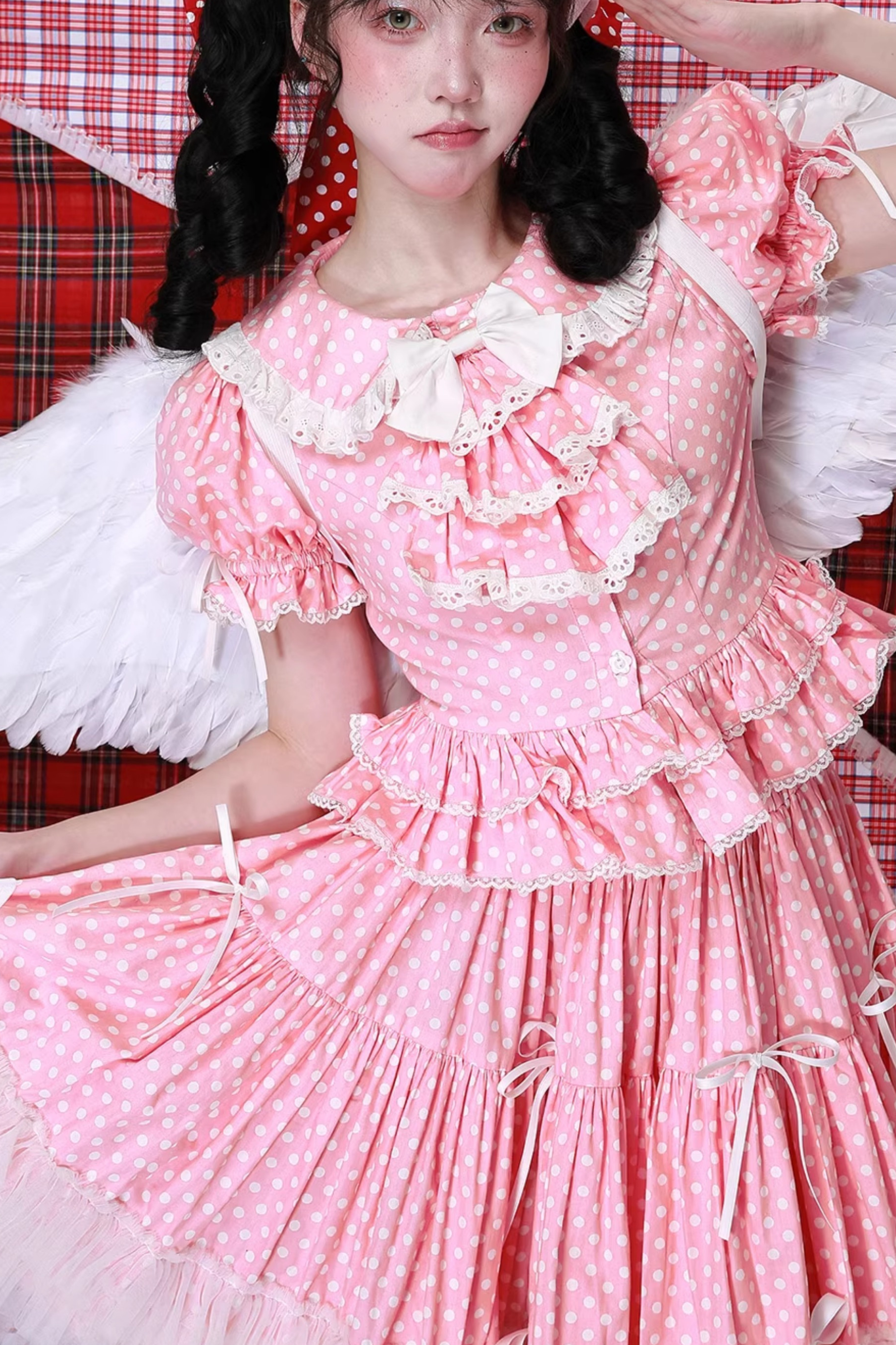 ピンクと白のオールドスクールロリータファッションドレス、蝶結びディテール、ロリータJSKセット