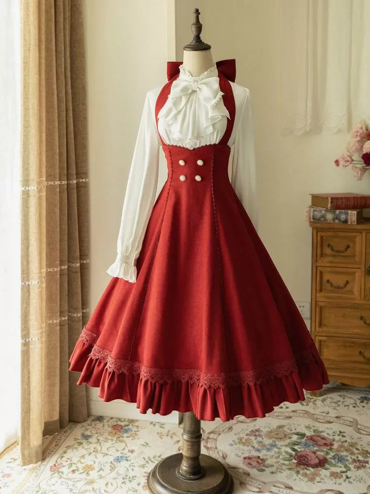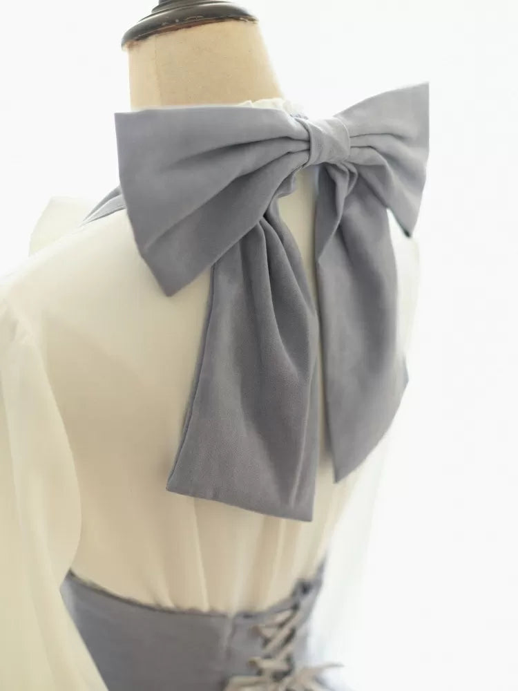 青と白のオールドスクールロリータファッションドレス 蝶結びディテール JSK セット