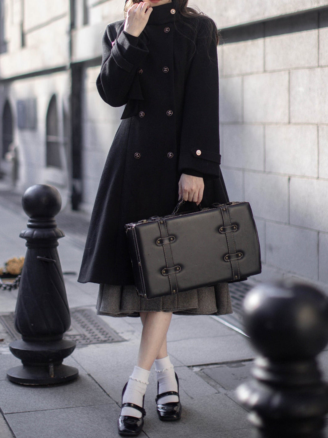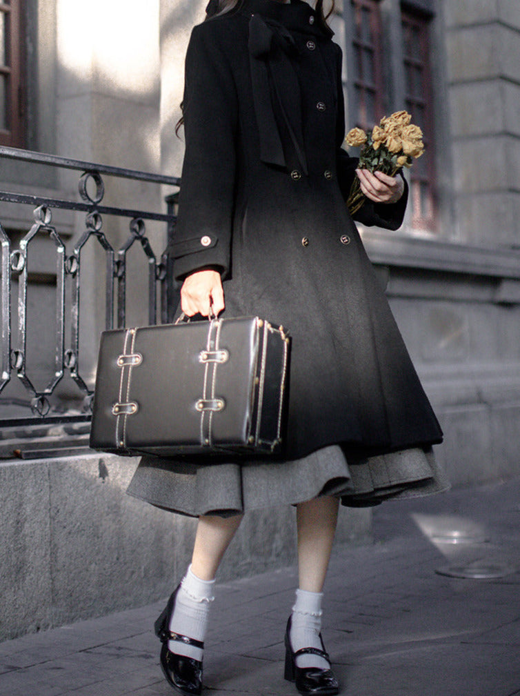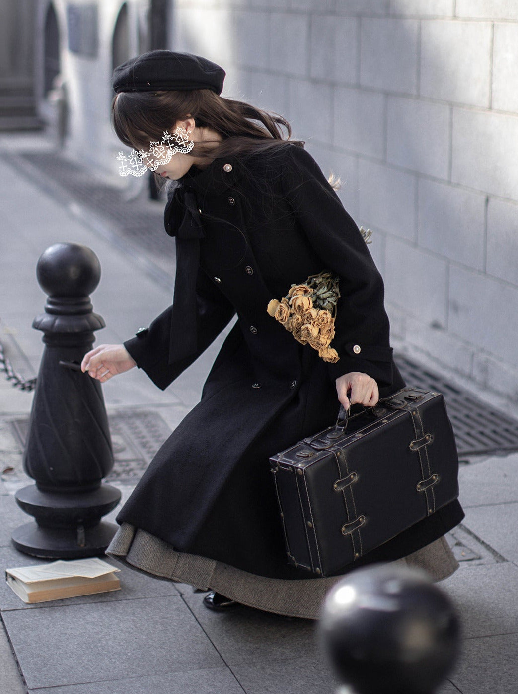 レトロなウールのダブルカラー+エレガントなブレストリボンコートスタンド