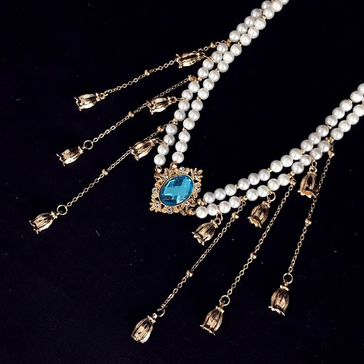 青と白のオールドスクールロリータファッションドレス 蝶結びディテール JSK セット