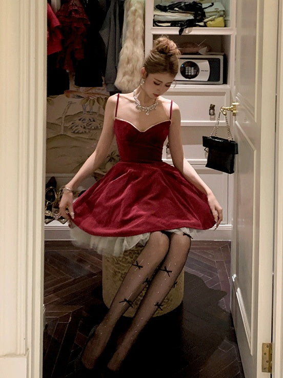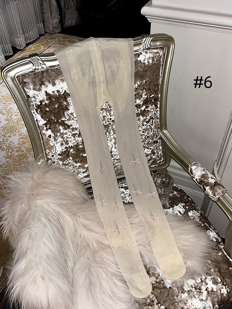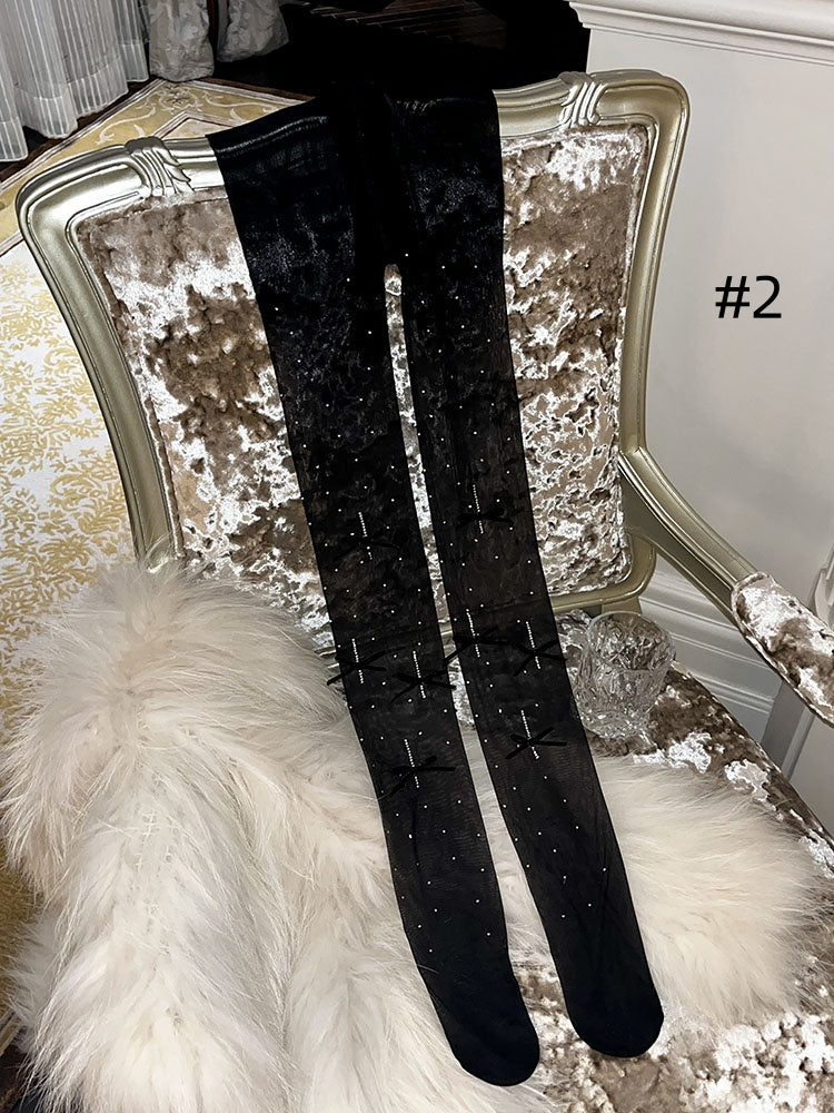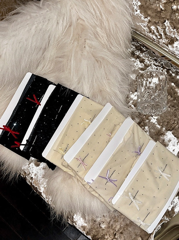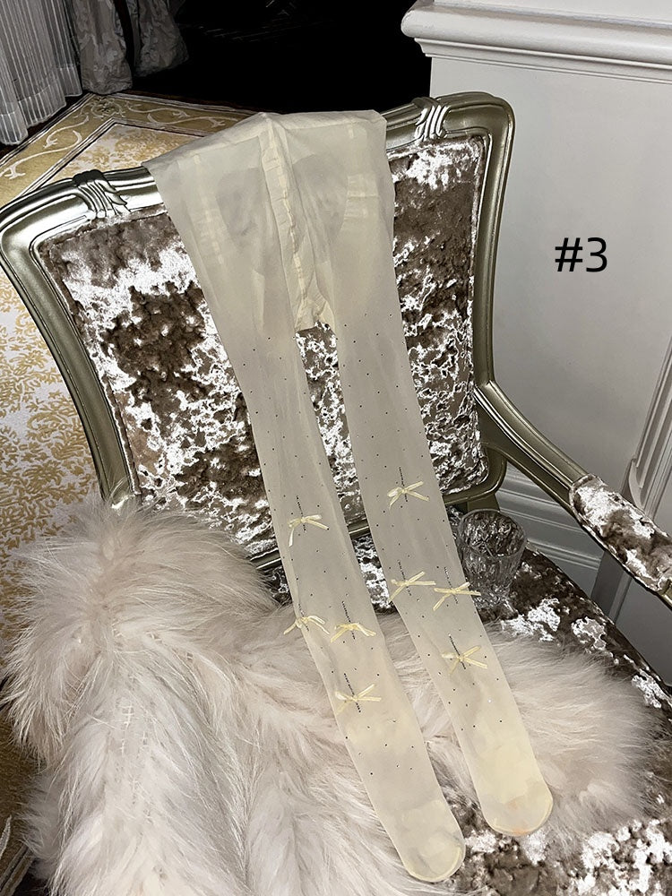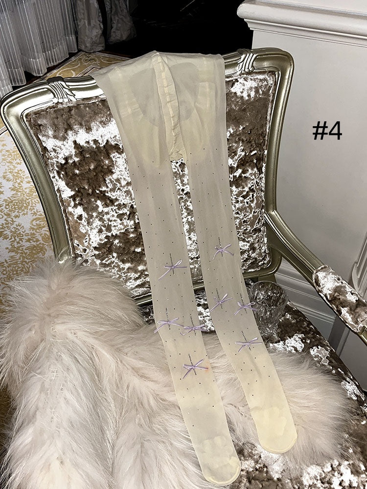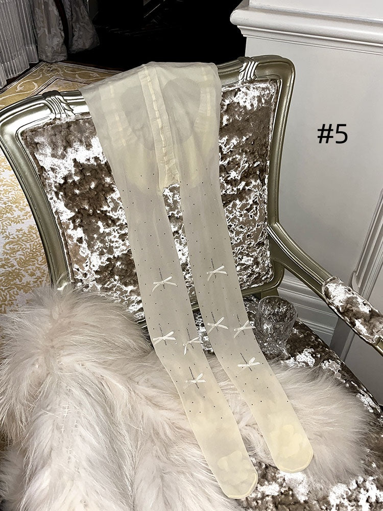 ラインストーンリボンドット柄タイツ