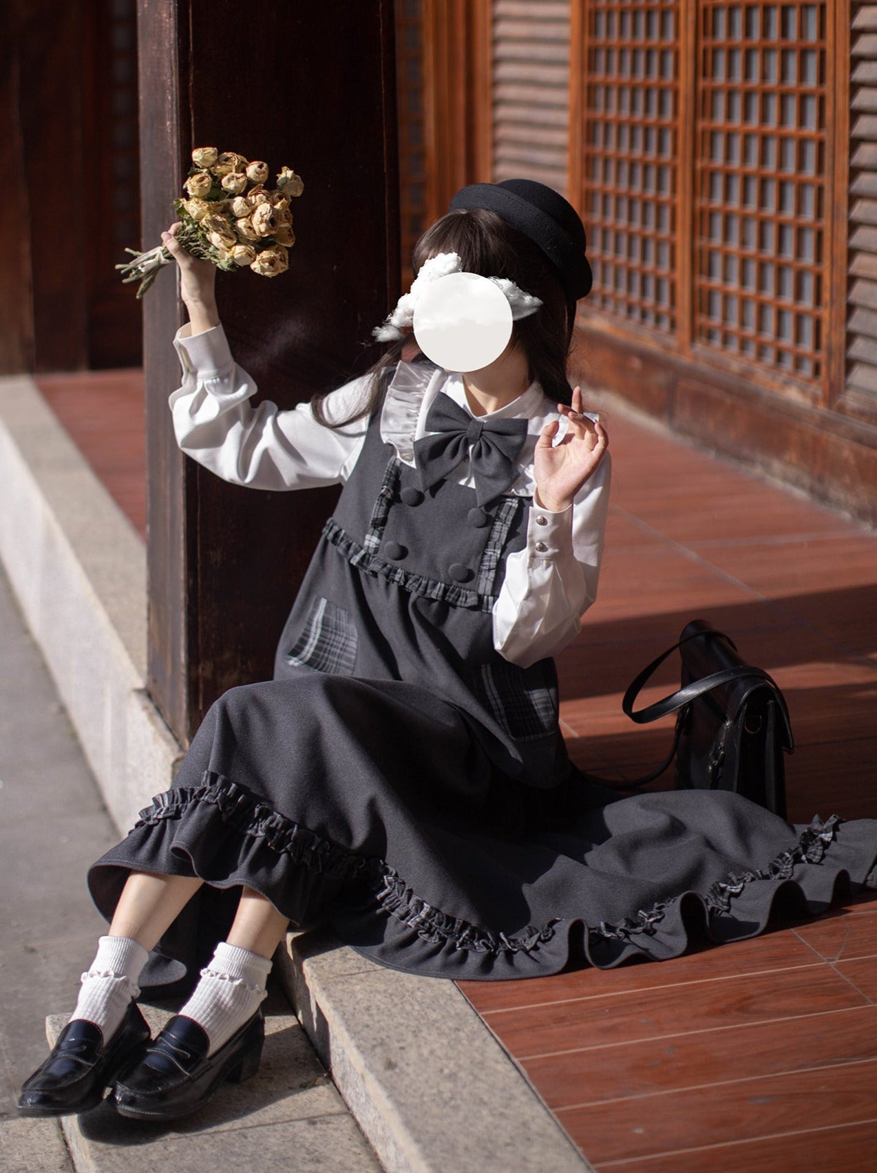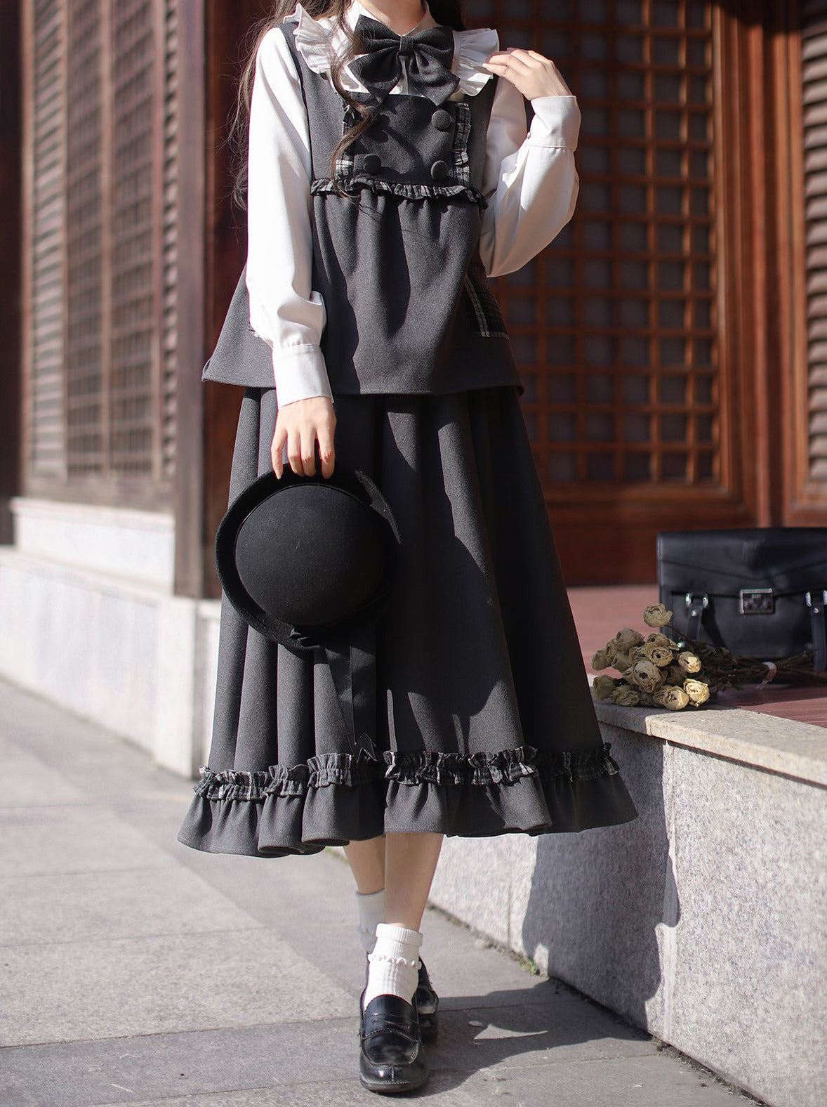 黒と白のオールドスクールロリータファッションドレス蝶結びロリータJSKセット