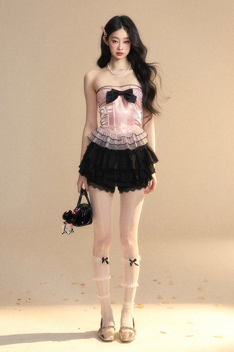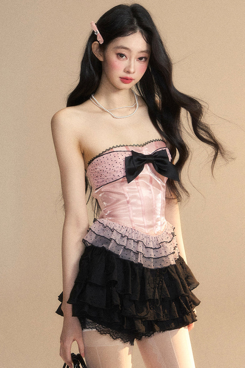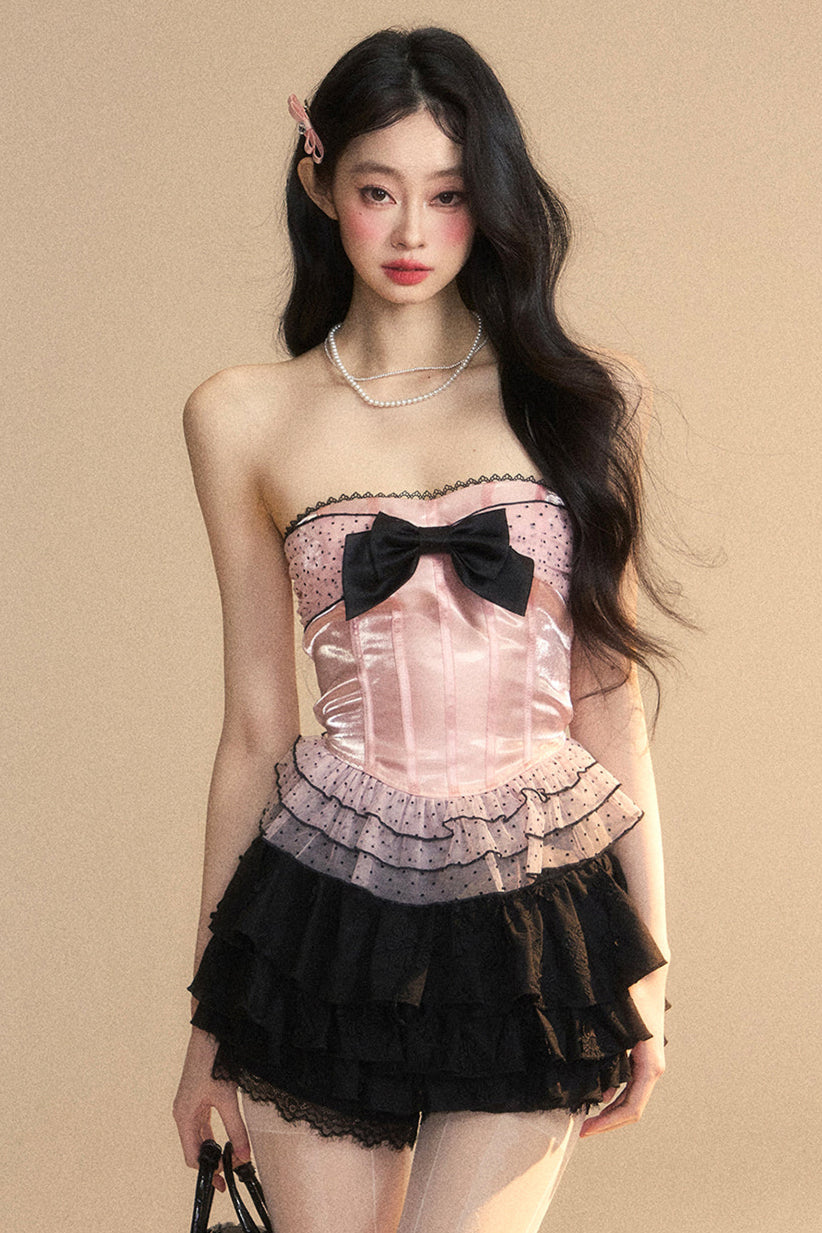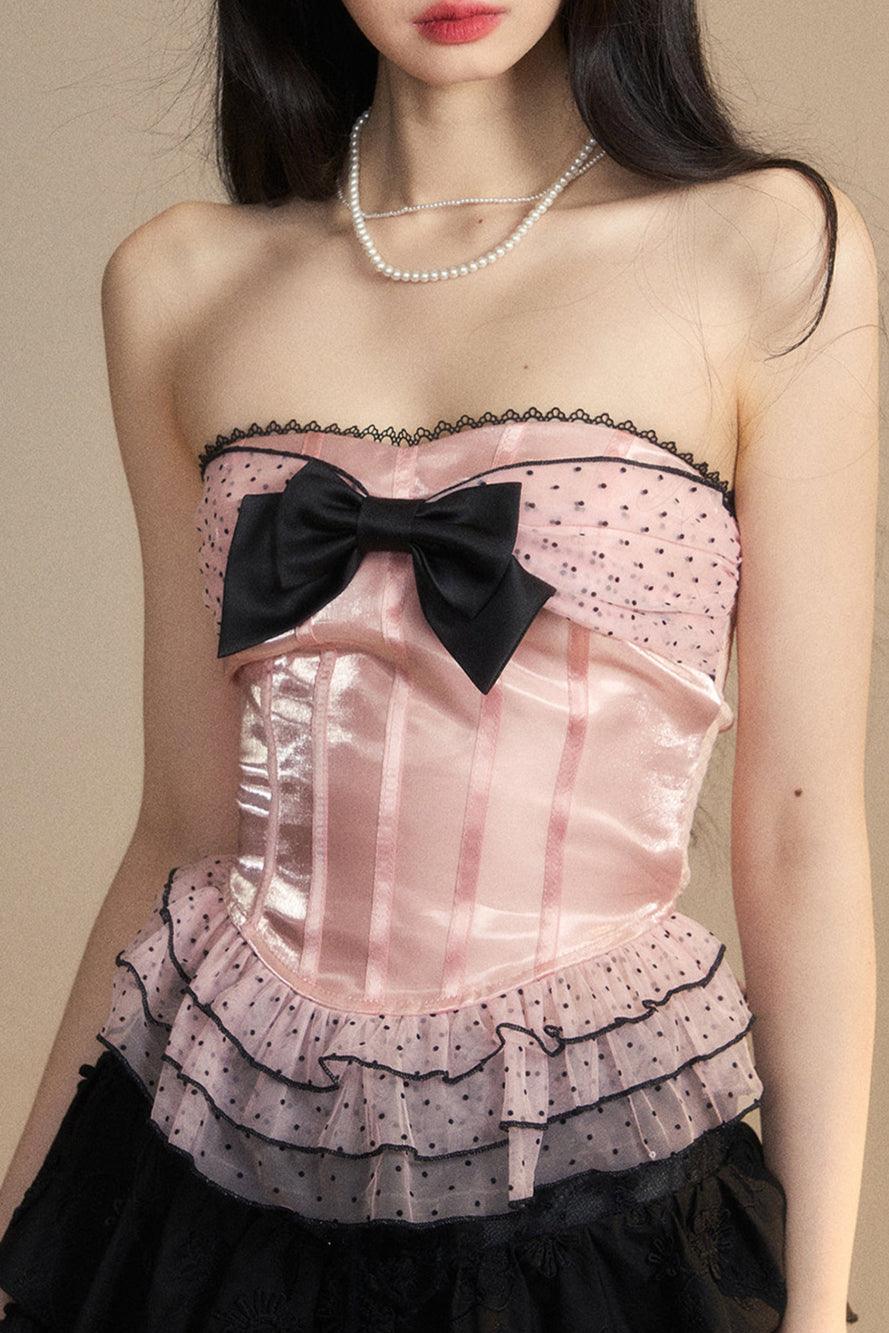 ❤ドットメッシュレースリボンチューブトップ❤