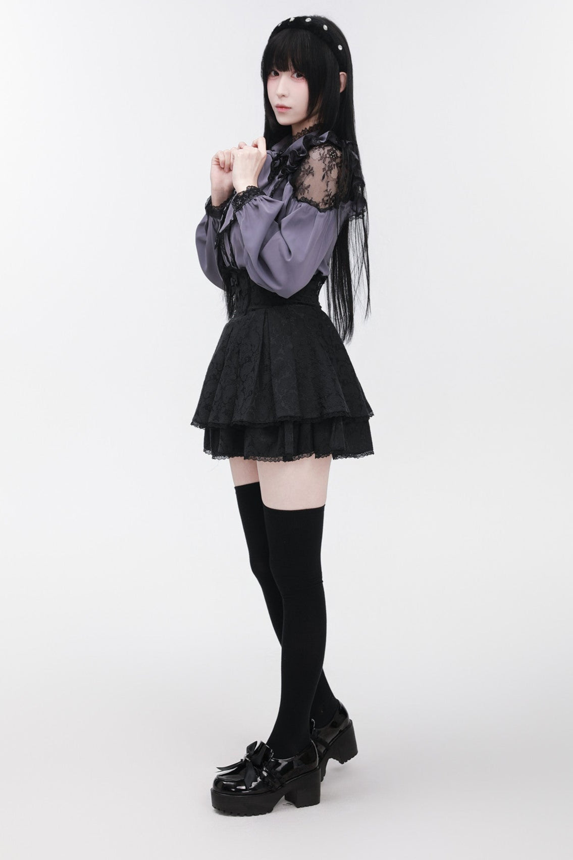 黒と白のオールドスクールロリータファッションドレス蝶結びロリータJSKセット