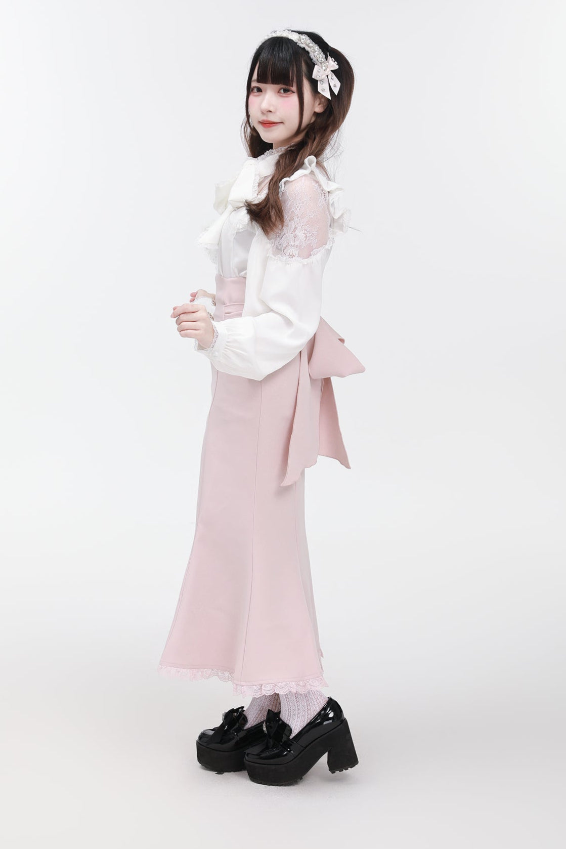 ピンクと白のオールドスクールロリータファッションドレス、蝶結びディテール、ロリータJSKセット