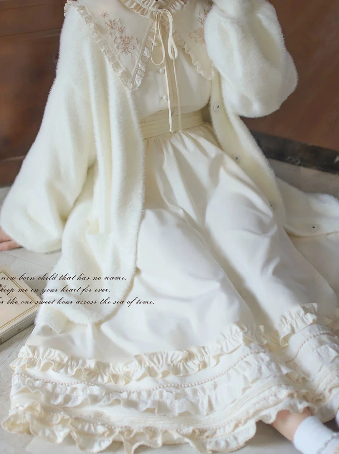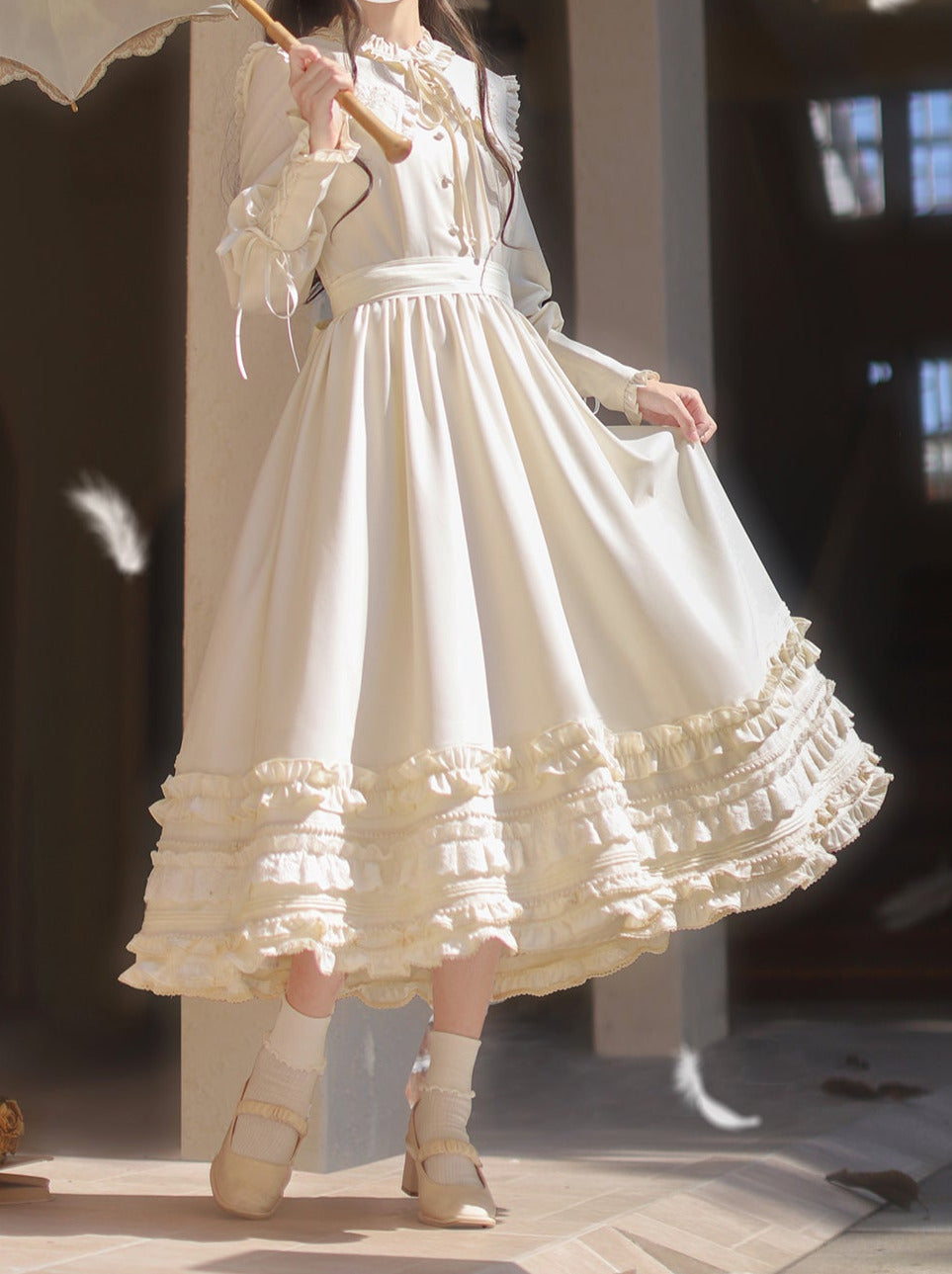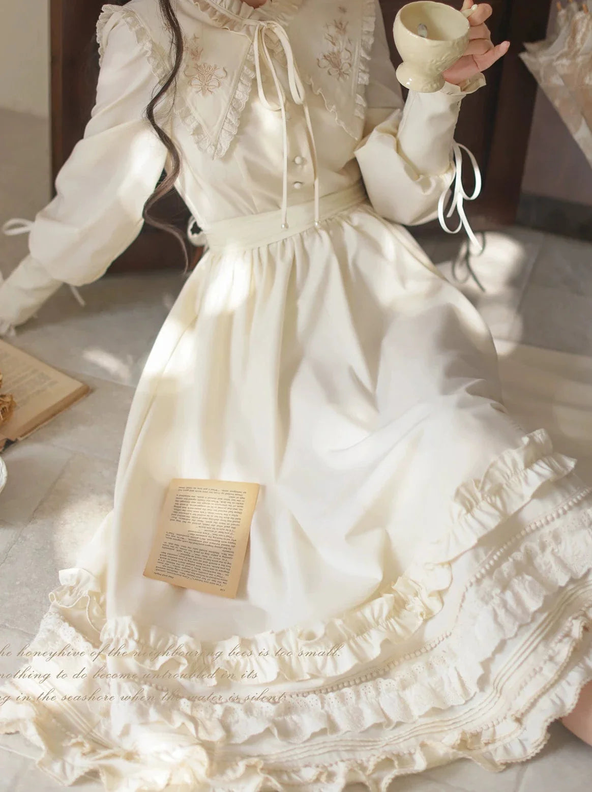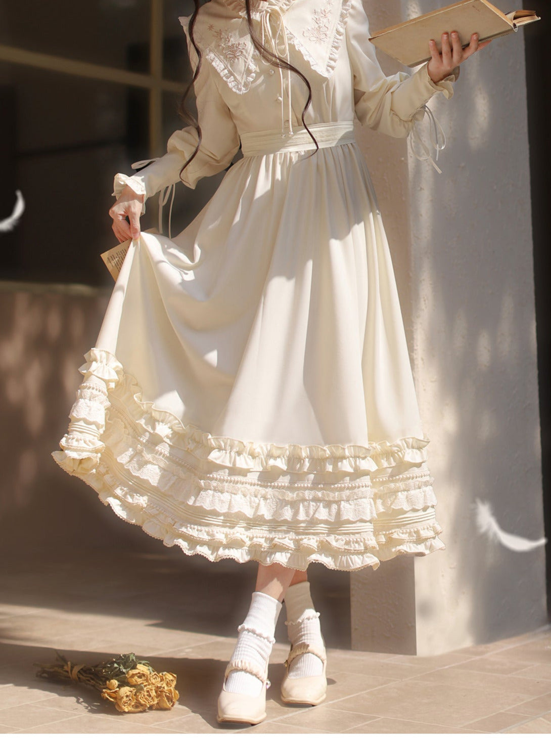 リボン ヴィンテージ フレンチウエスト ドレス 刺繍 ロマンチック