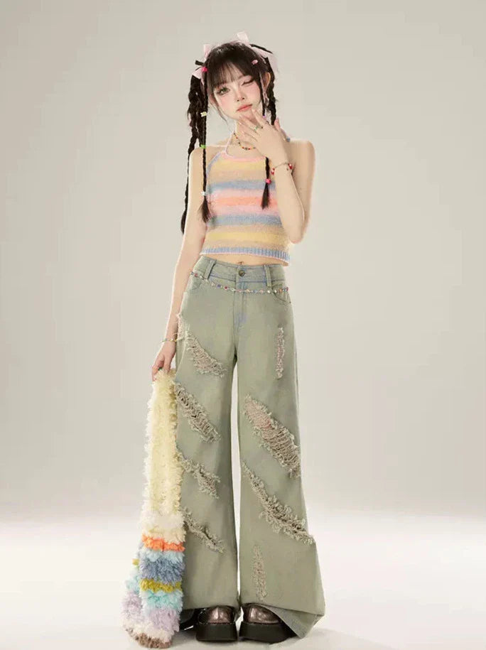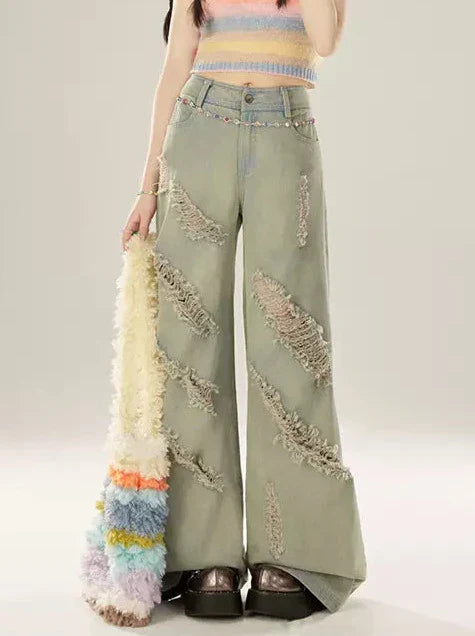 リップドストリートデニムワイドルーズジーンズで、あなたのスタイルを際立たせましょう。トレンドのダメージ加工デザインとゆったりとしたフィット感が、最高の履き心地を実現します。カジュアルなお出かけにぴったりのこのジーンズは、ワードローブにキュートなアクセントを加えてくれるでしょう。