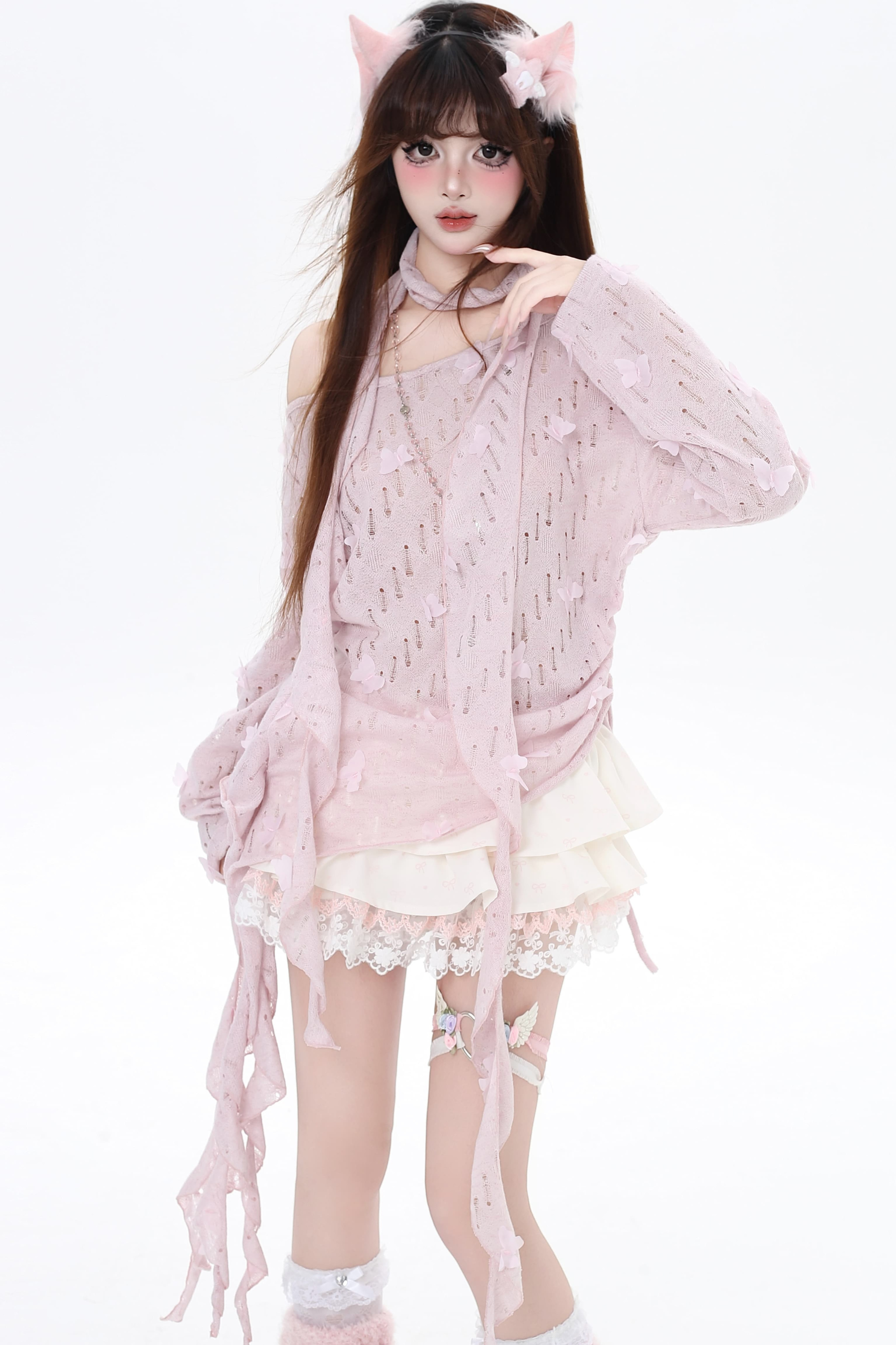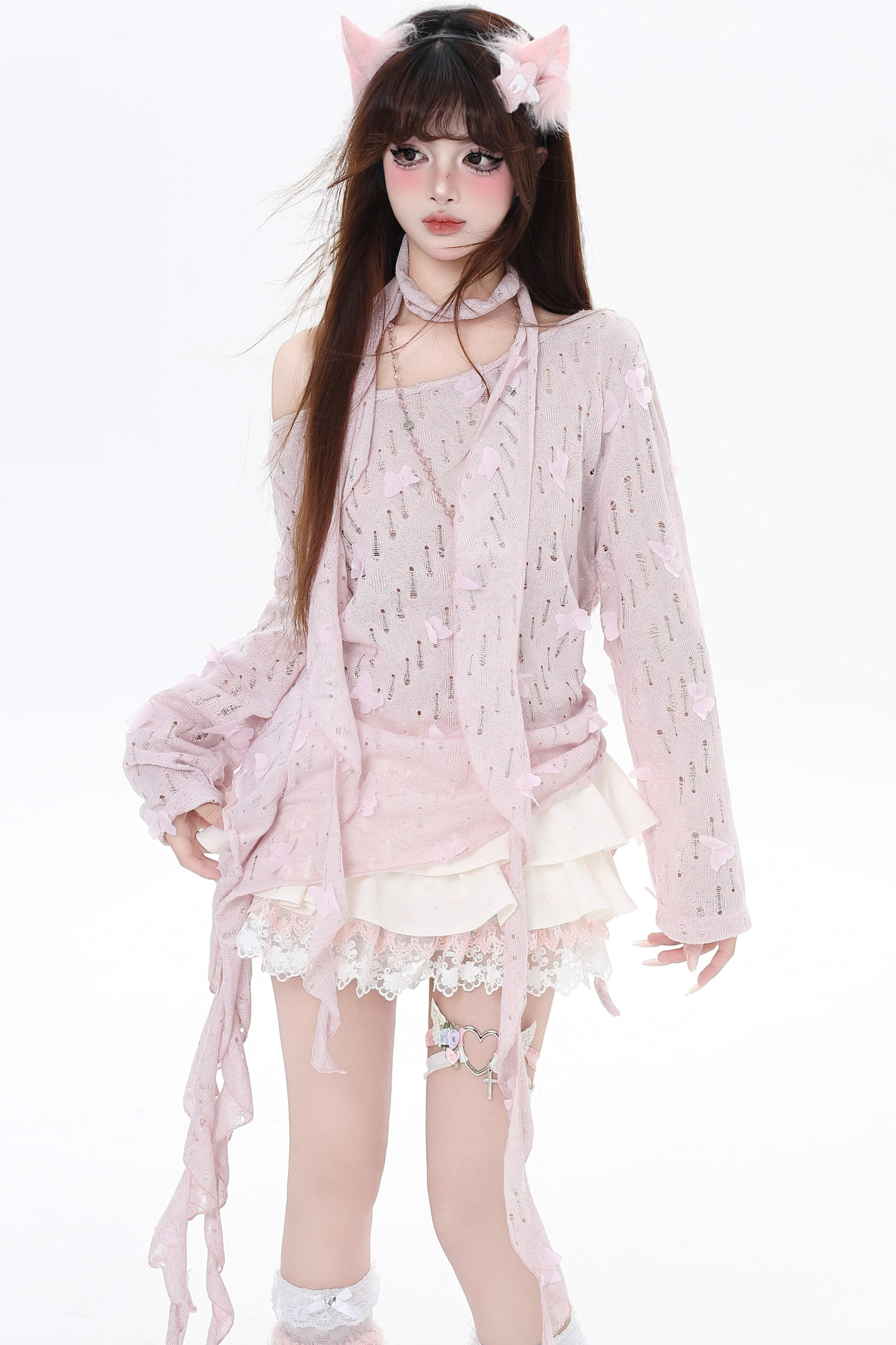 ホワイトとピンクのロリータボンネットチョーカー