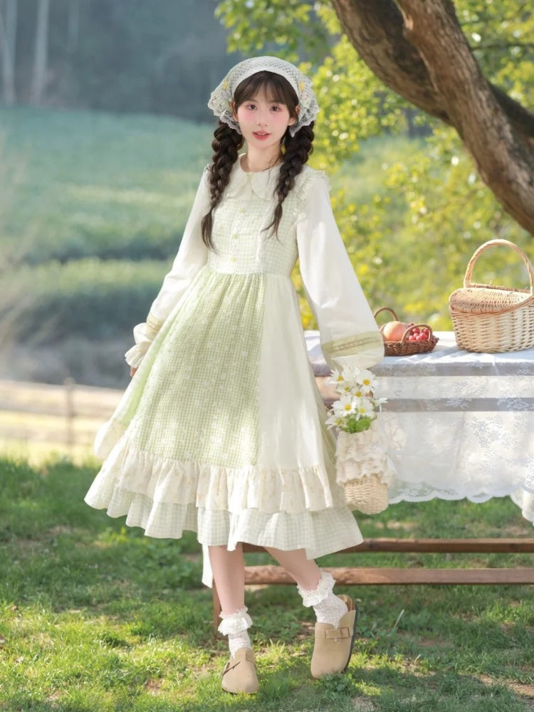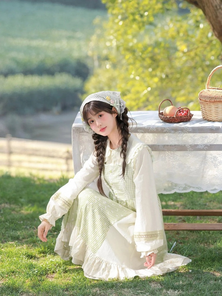 青と白のオールドスクールロリータファッションドレス 蝶結びディテール JSK セット