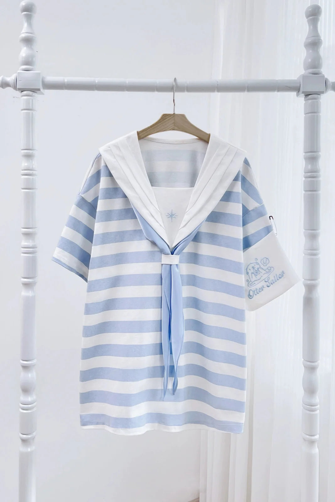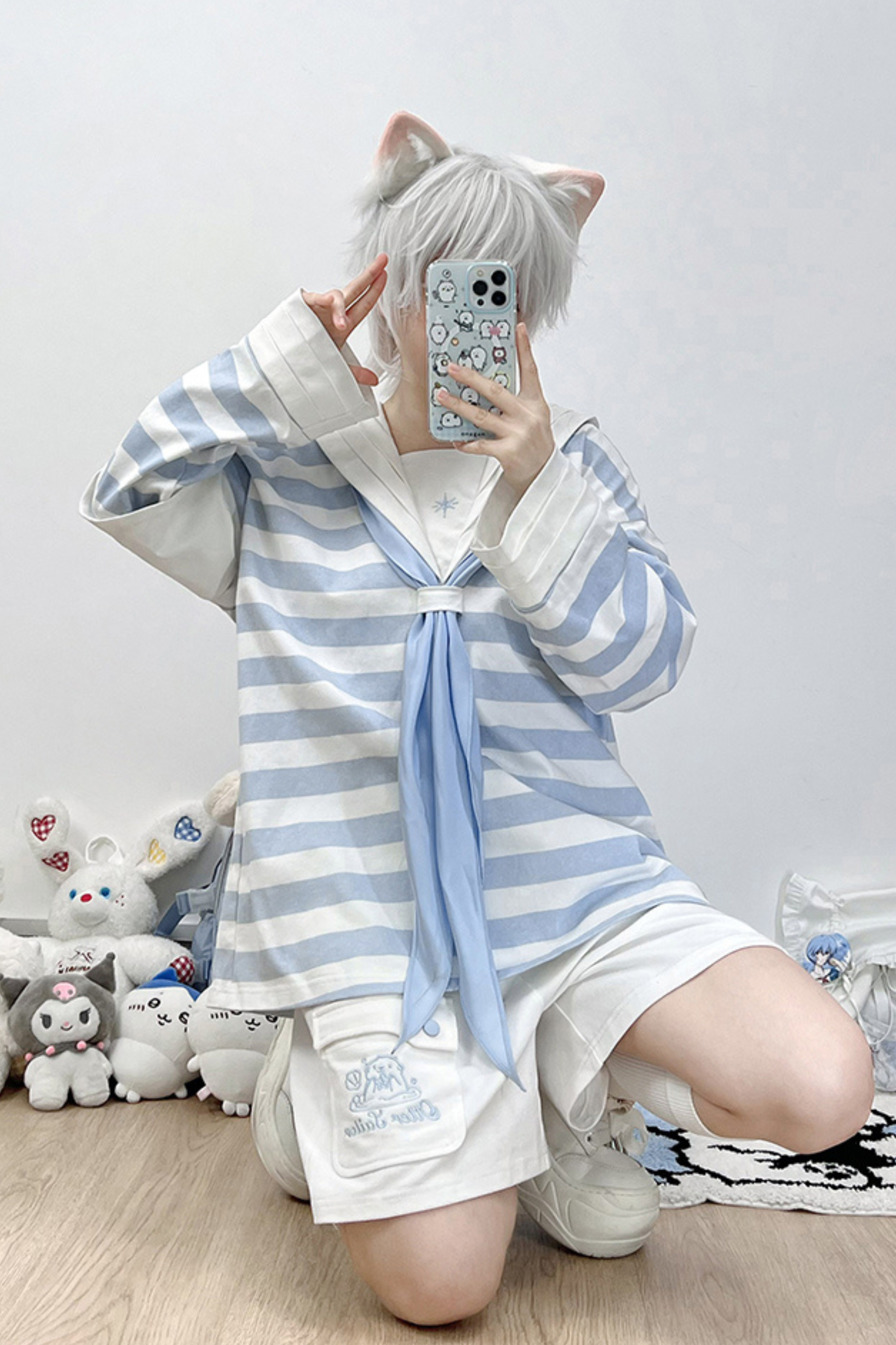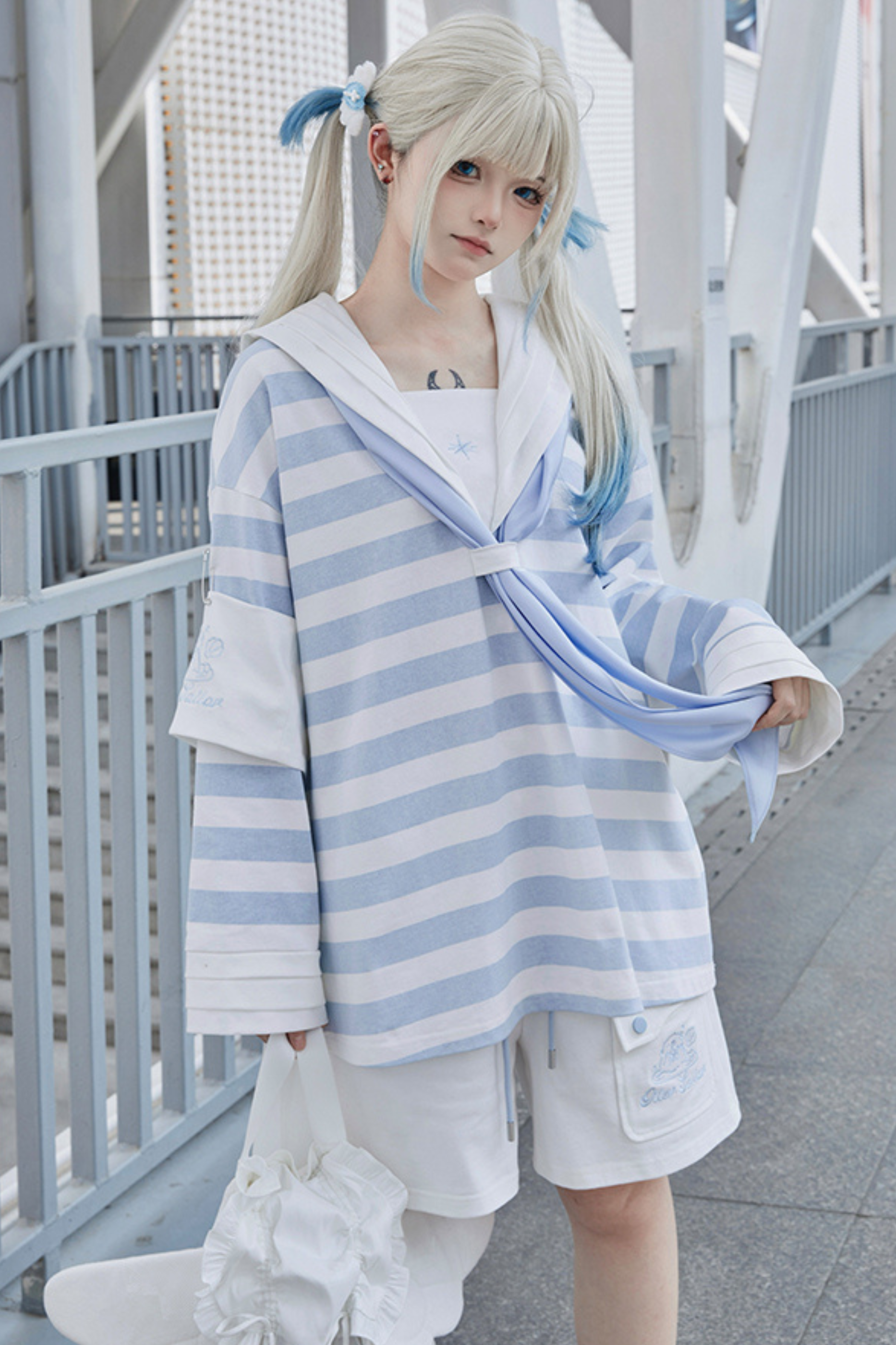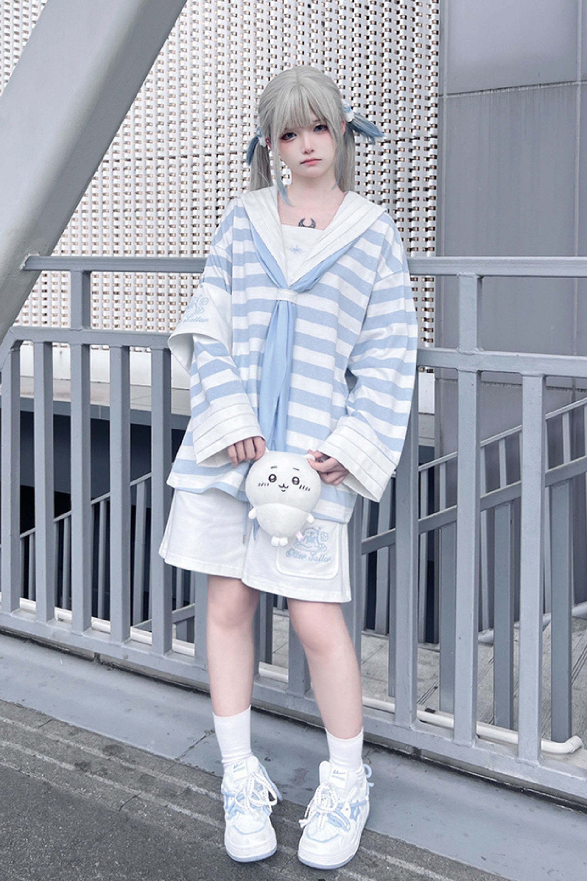 ❤天使かわいい👼ボーダーセーラーカラーサブカルトップス+ハーフパンツ❤