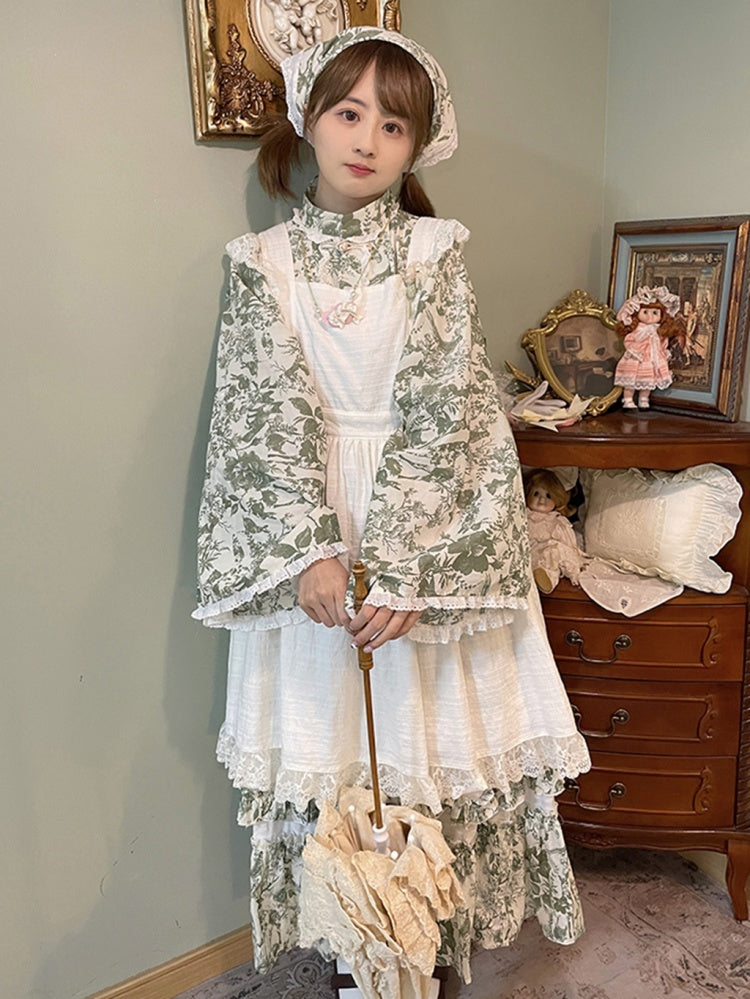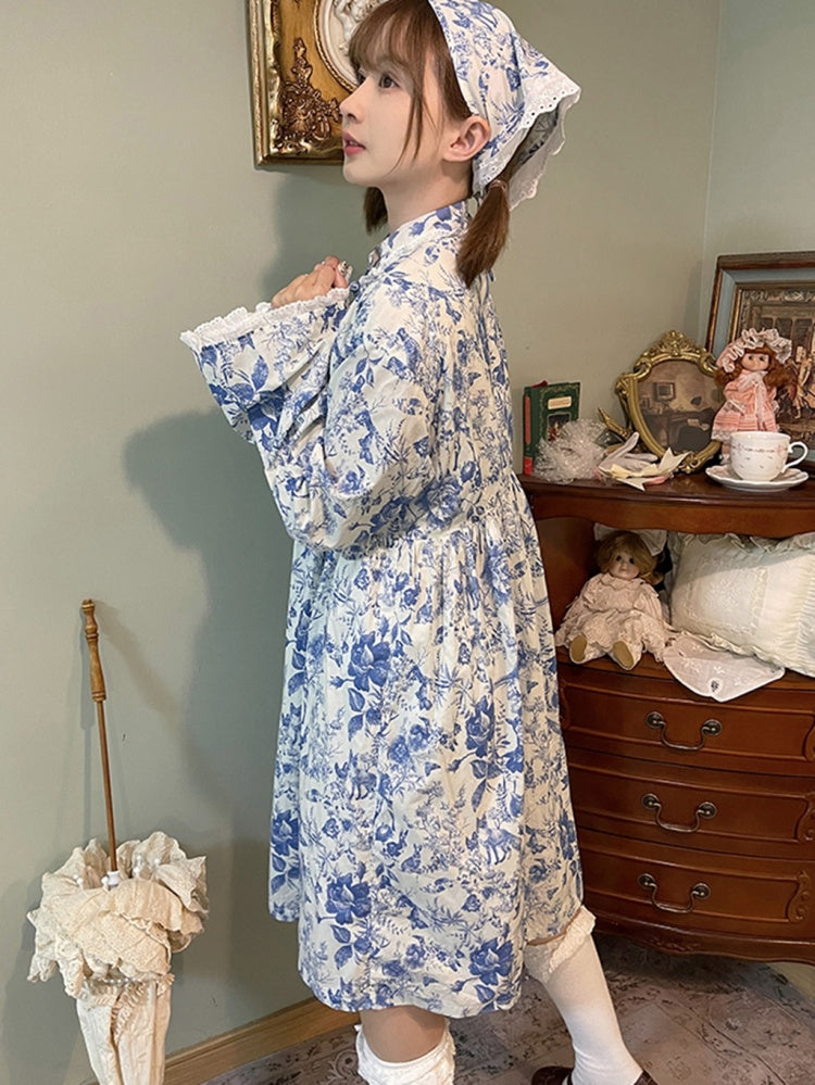 青と白のオールドスクールロリータファッションドレス 蝶結びディテール JSK セット