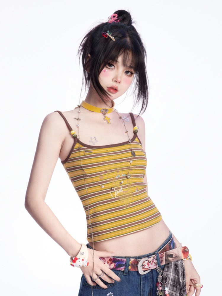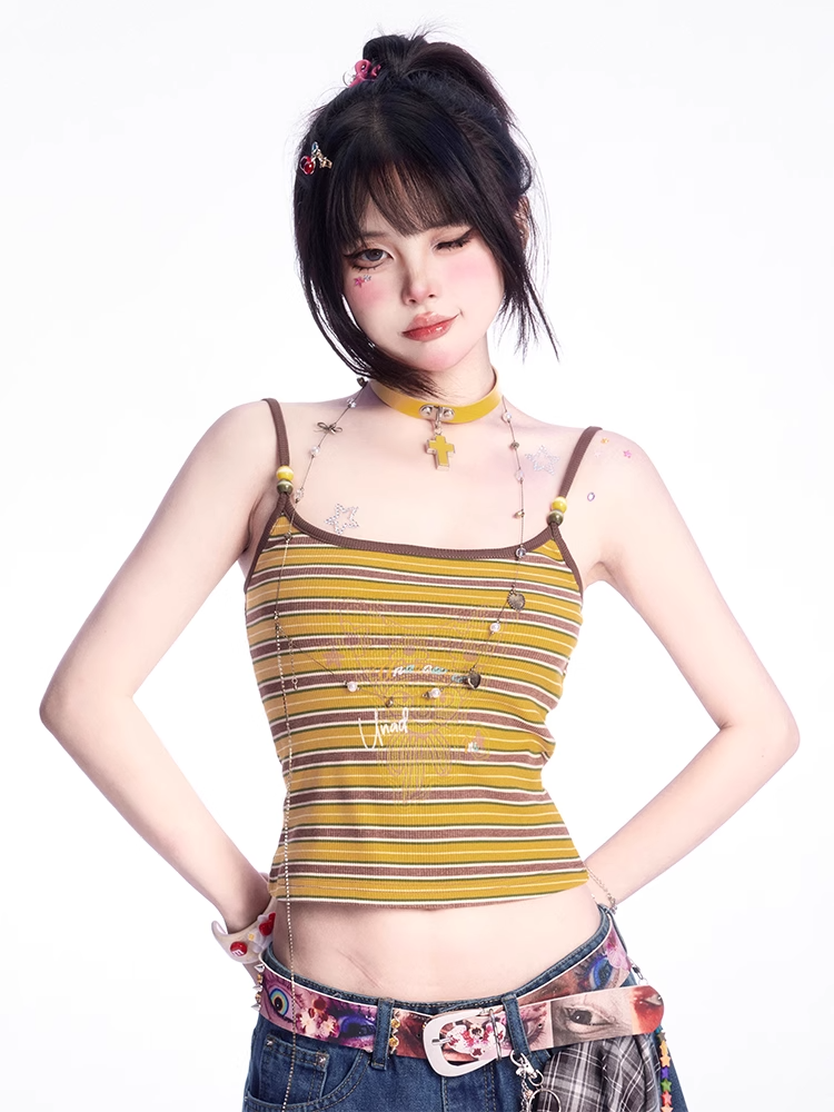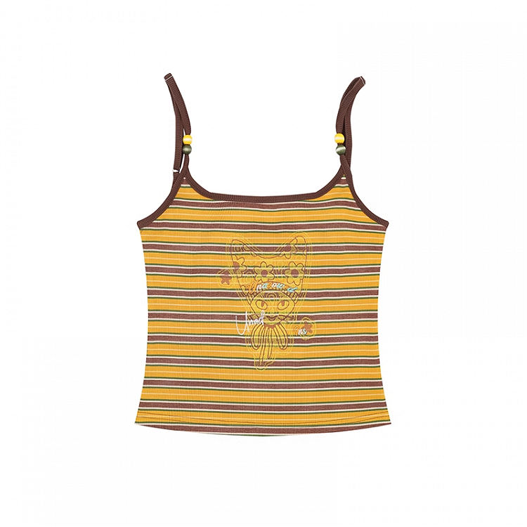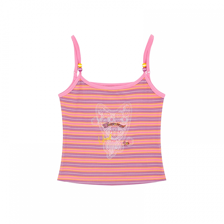 スクープトップネックライン ジンジャー/ピンクストライプ キャミソール スリムフィット