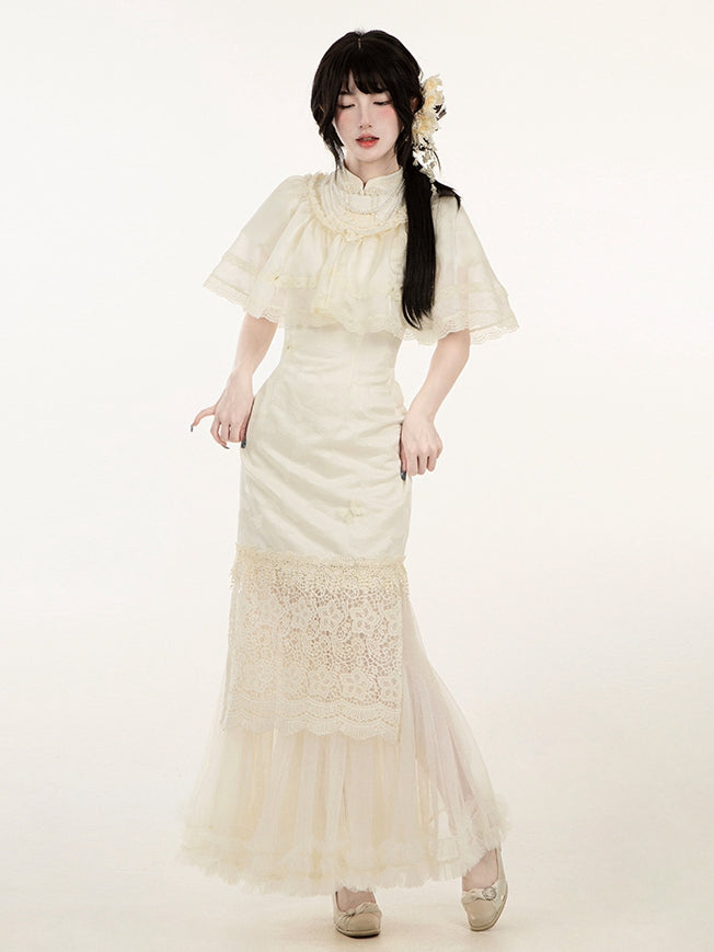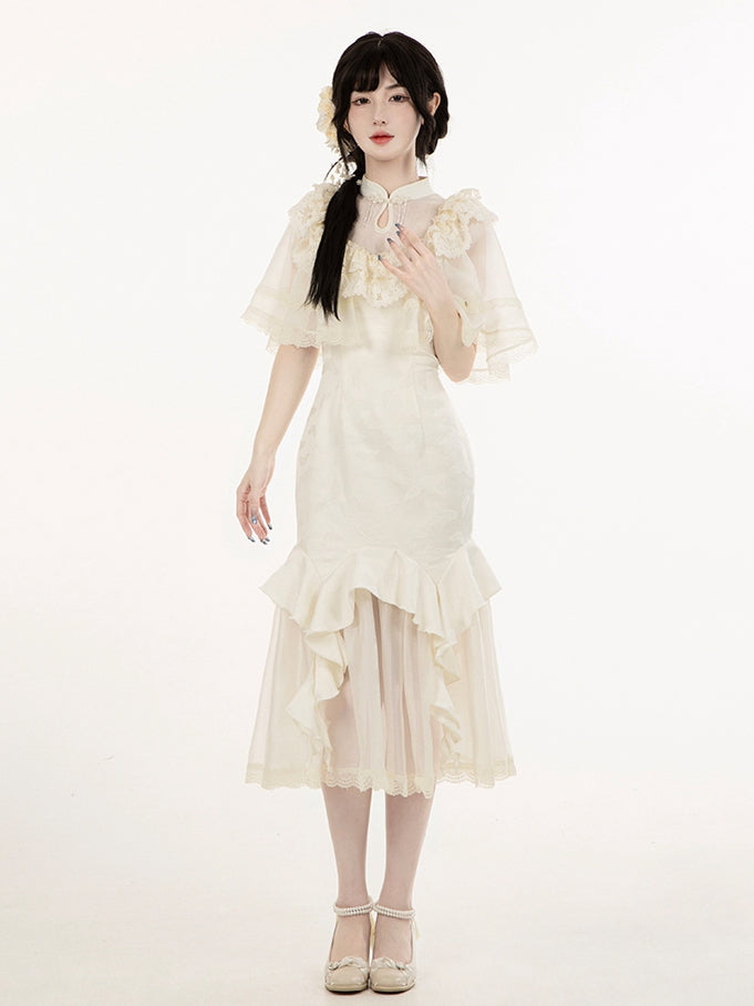 青と白のオールドスクールロリータファッションドレス 蝶結びディテール JSK セット