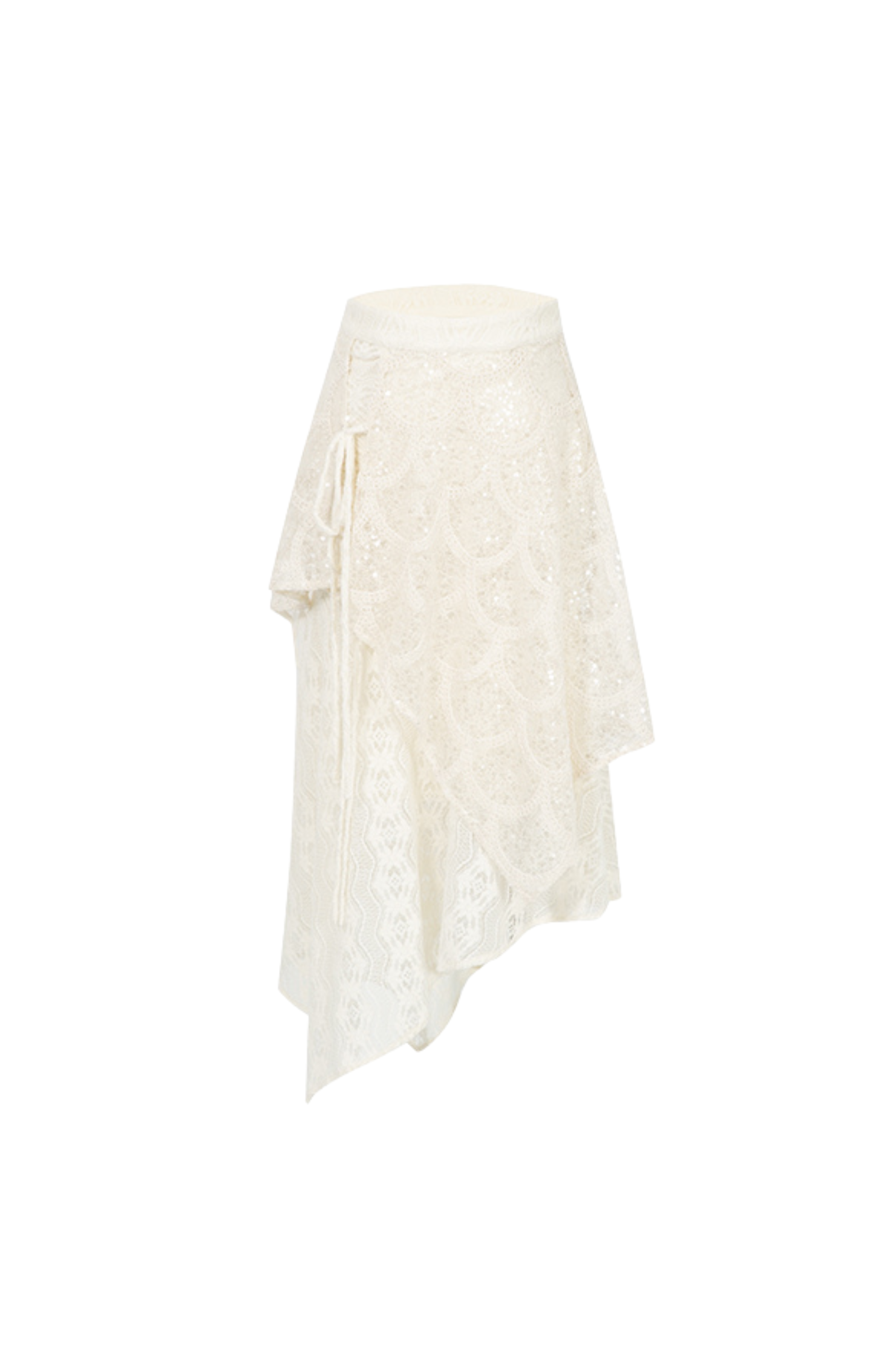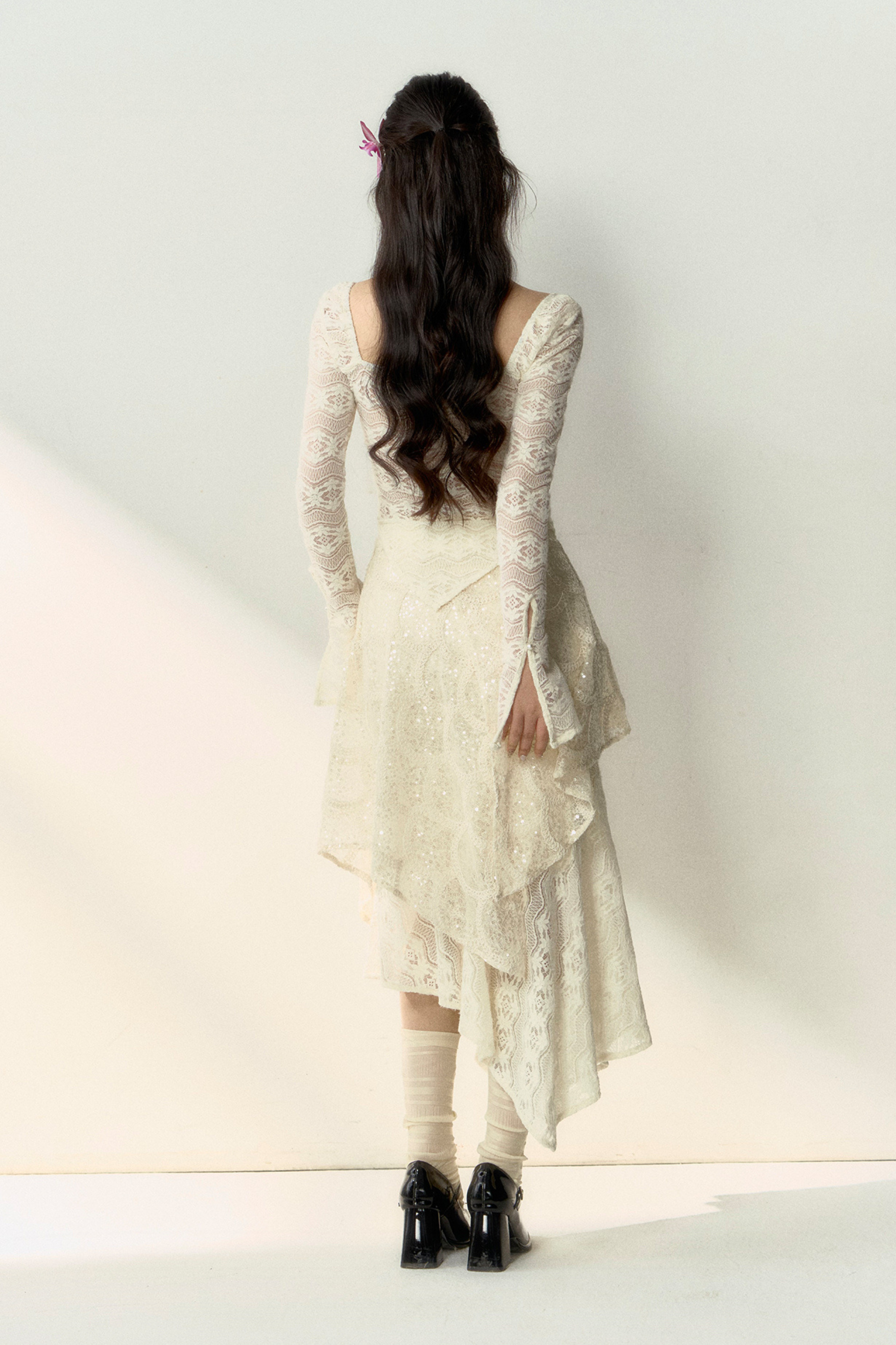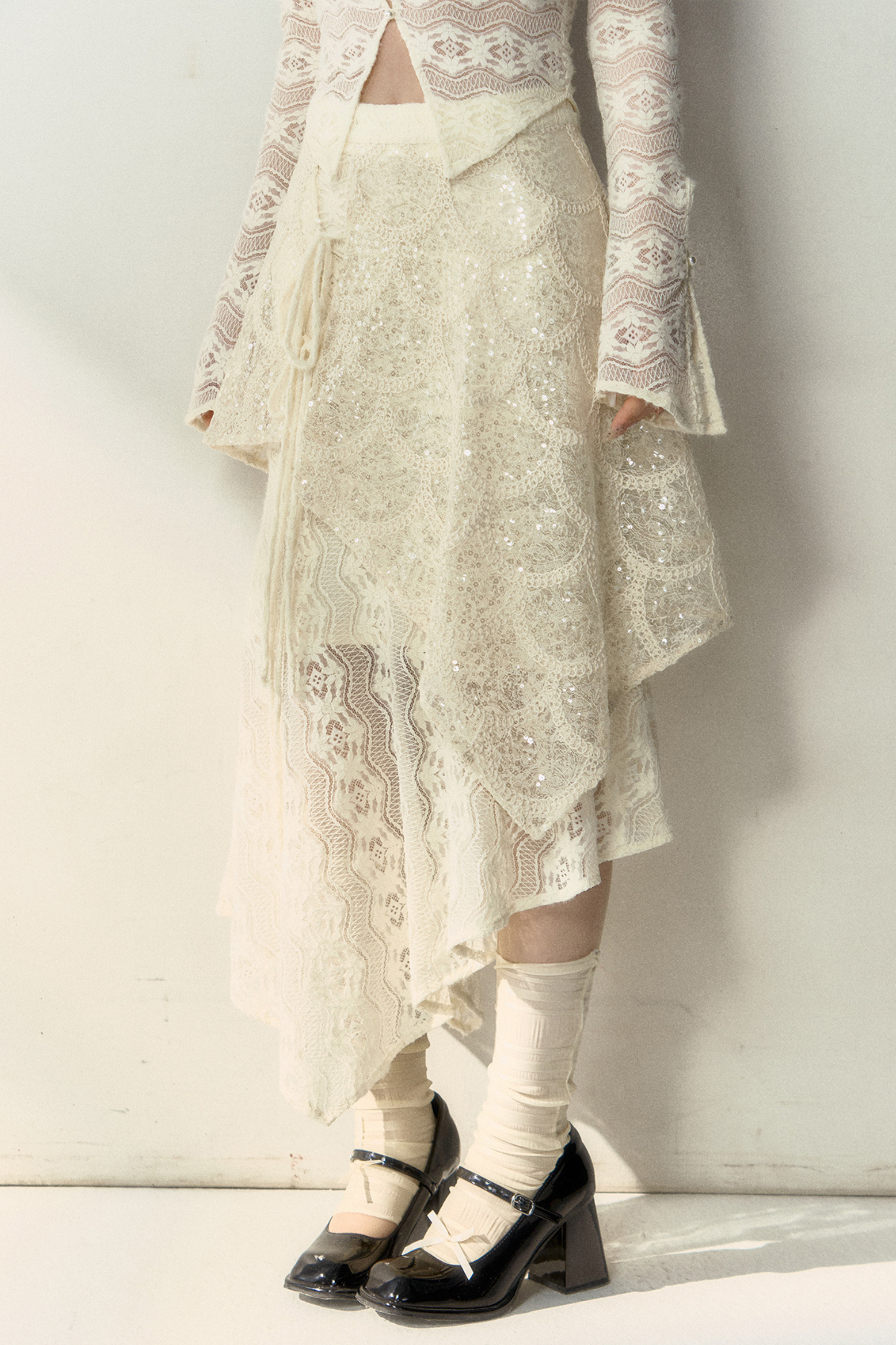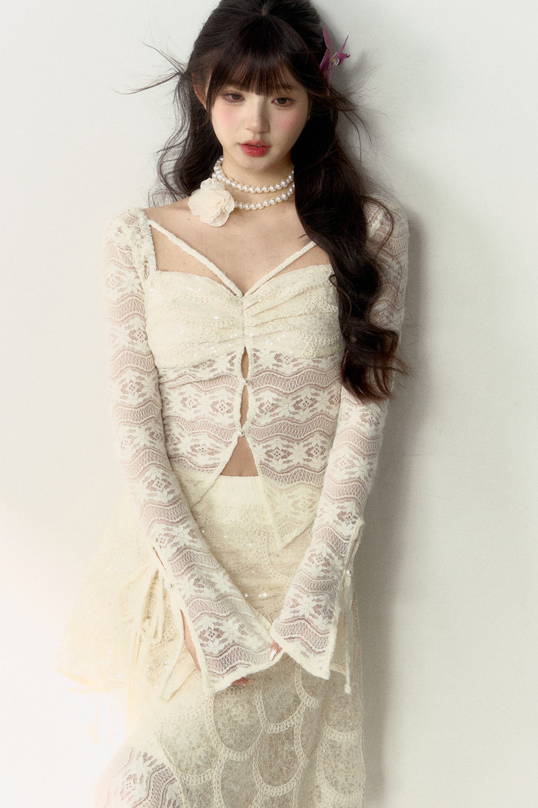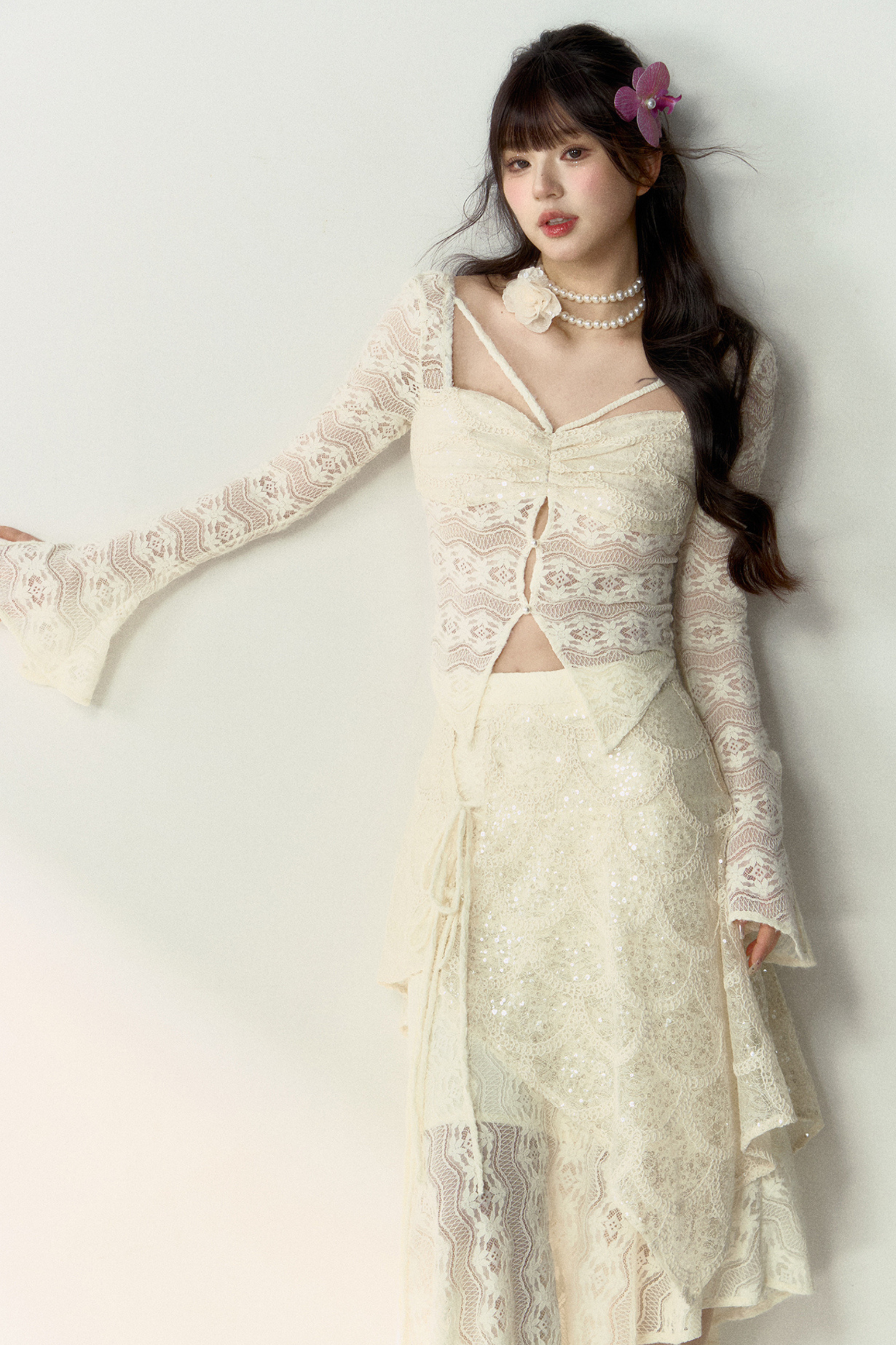 ❤フレンチシャイニーレースシアートップ + アシンメトリースカート❤