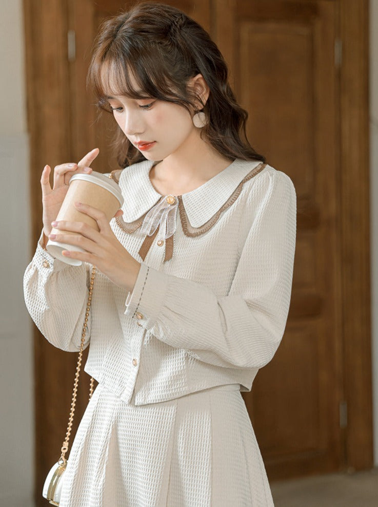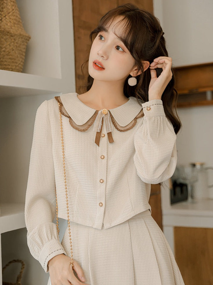シャツ フレアスカート ショート丈 レトロ ガーリー