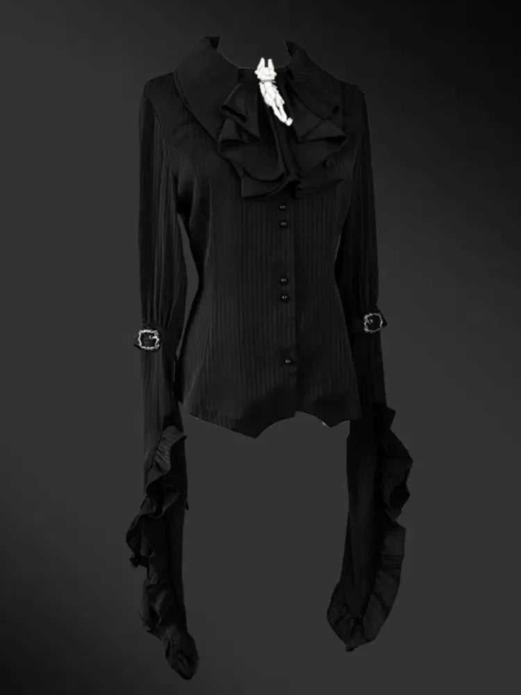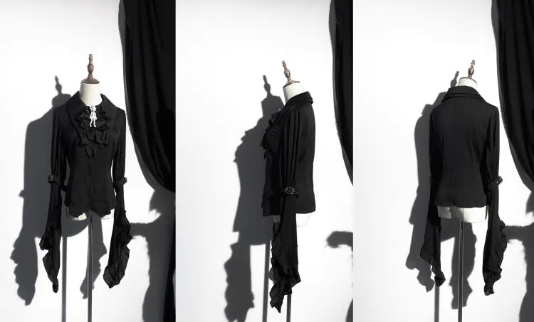 プラスサイズあり ブラック レイヤード ポインテッド フラットカラー ゴシック ロリータ 長袖シャツ