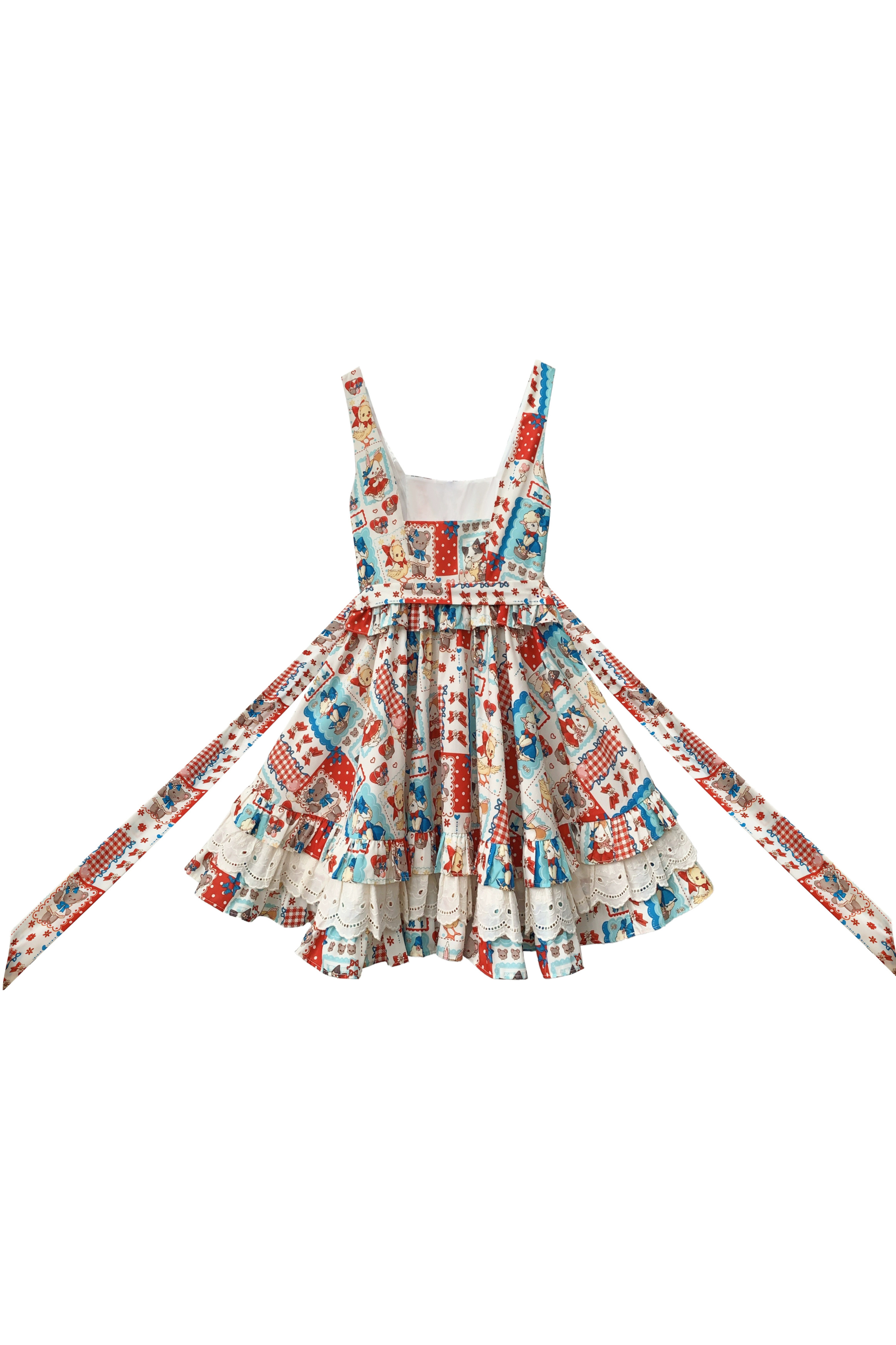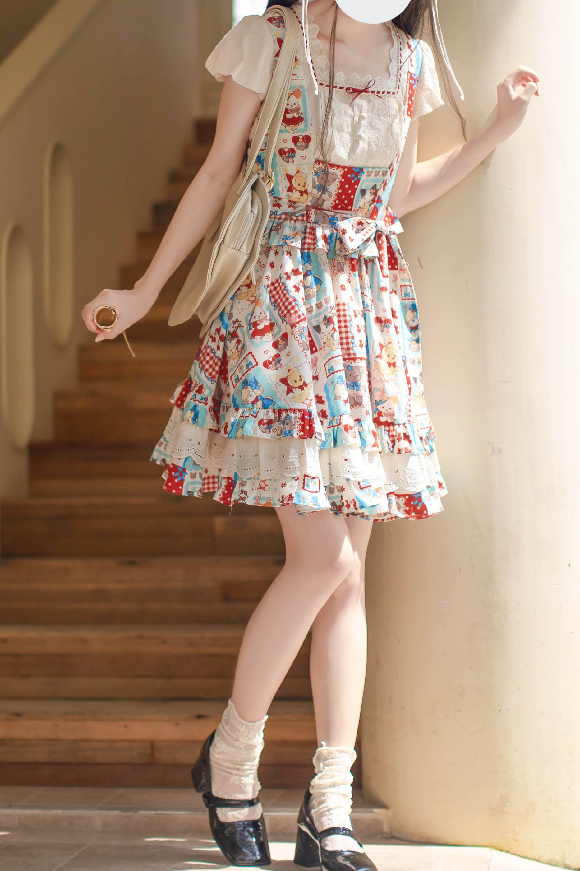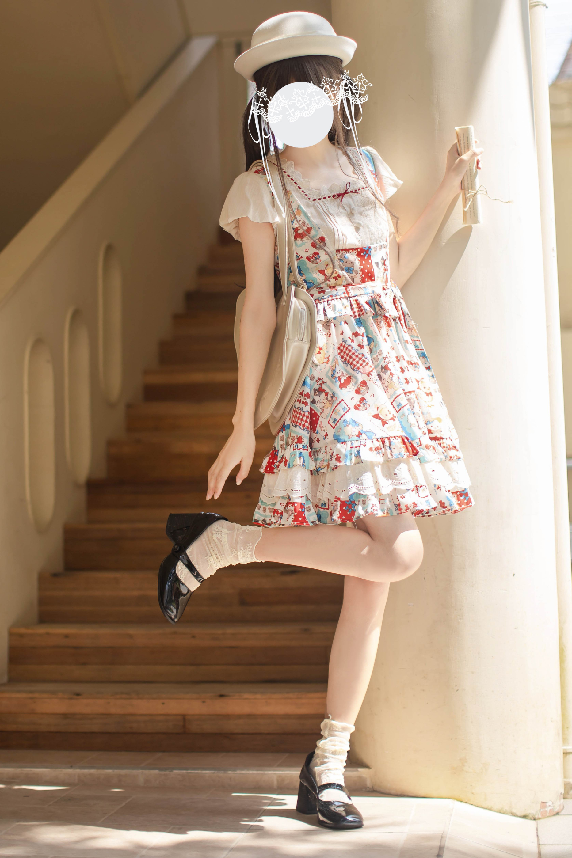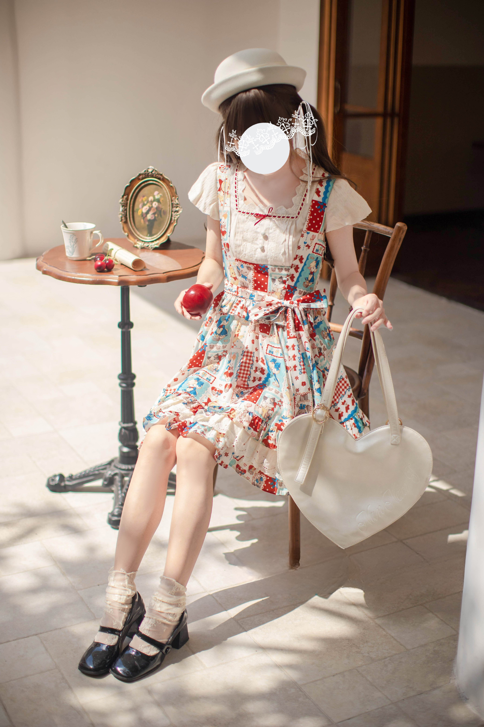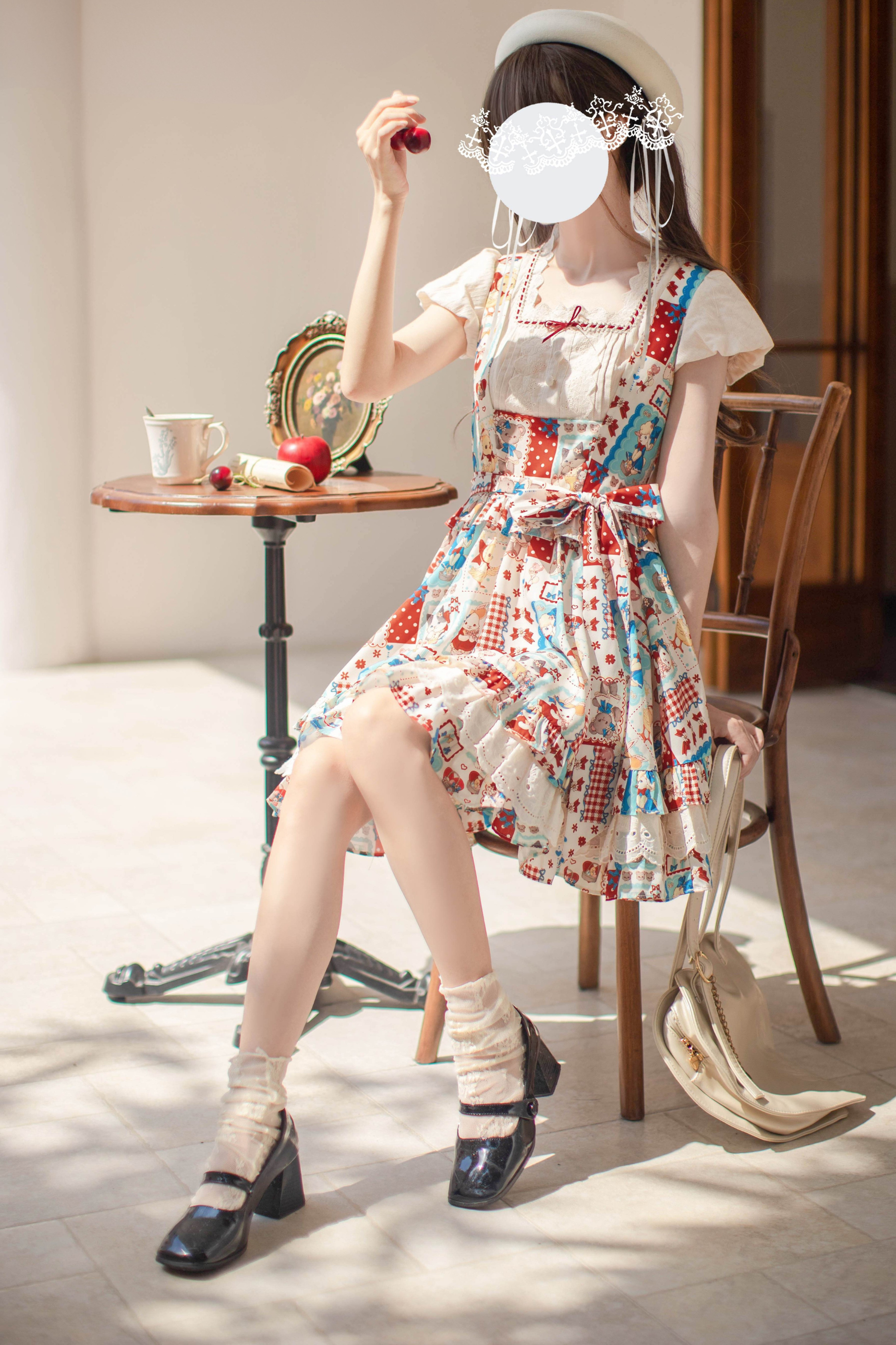 青と白のオールドスクールロリータファッションドレス 蝶結びディテール JSK セット