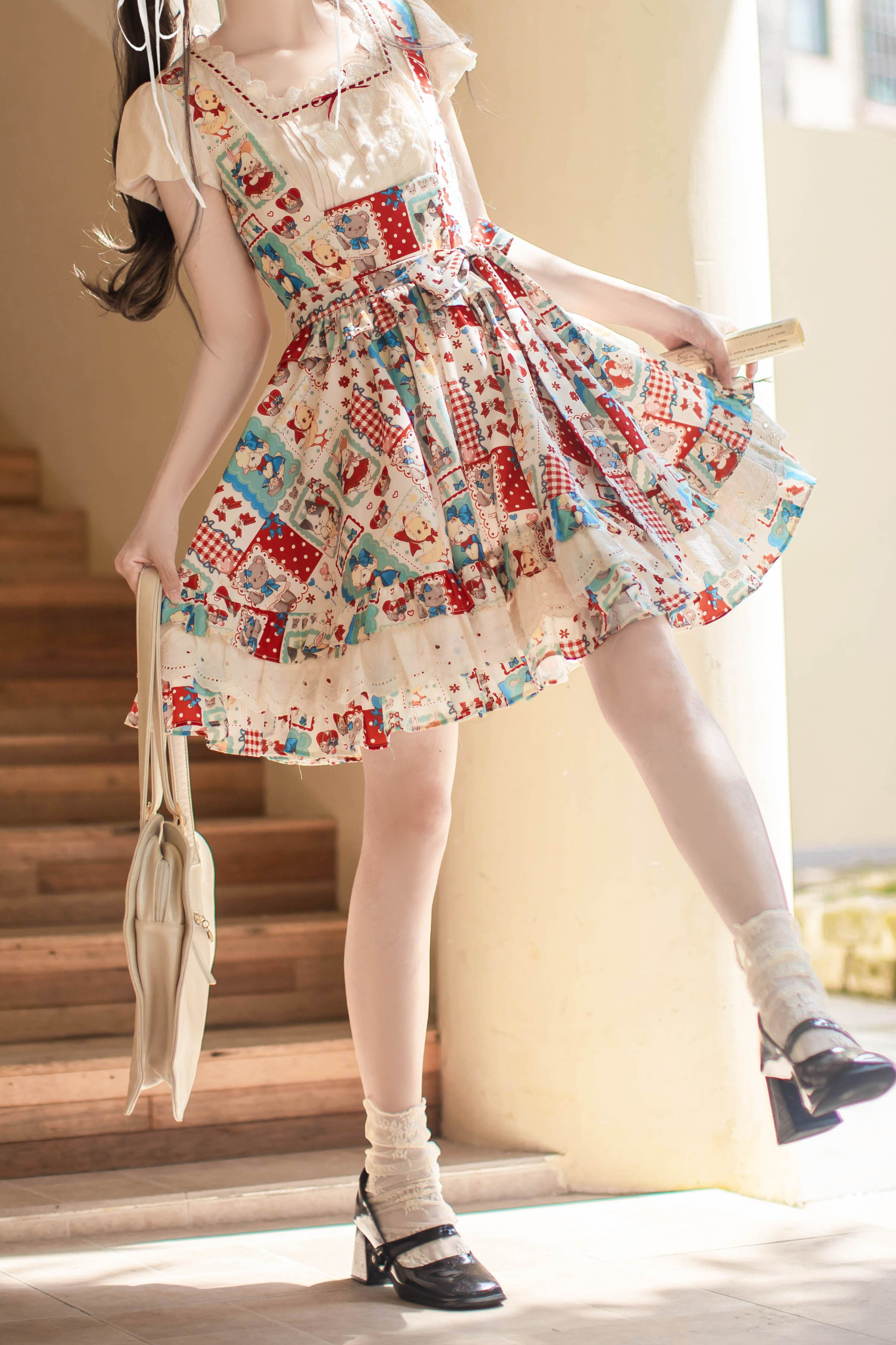 黒と白のオールドスクールロリータファッションドレス蝶結びロリータJSKセット