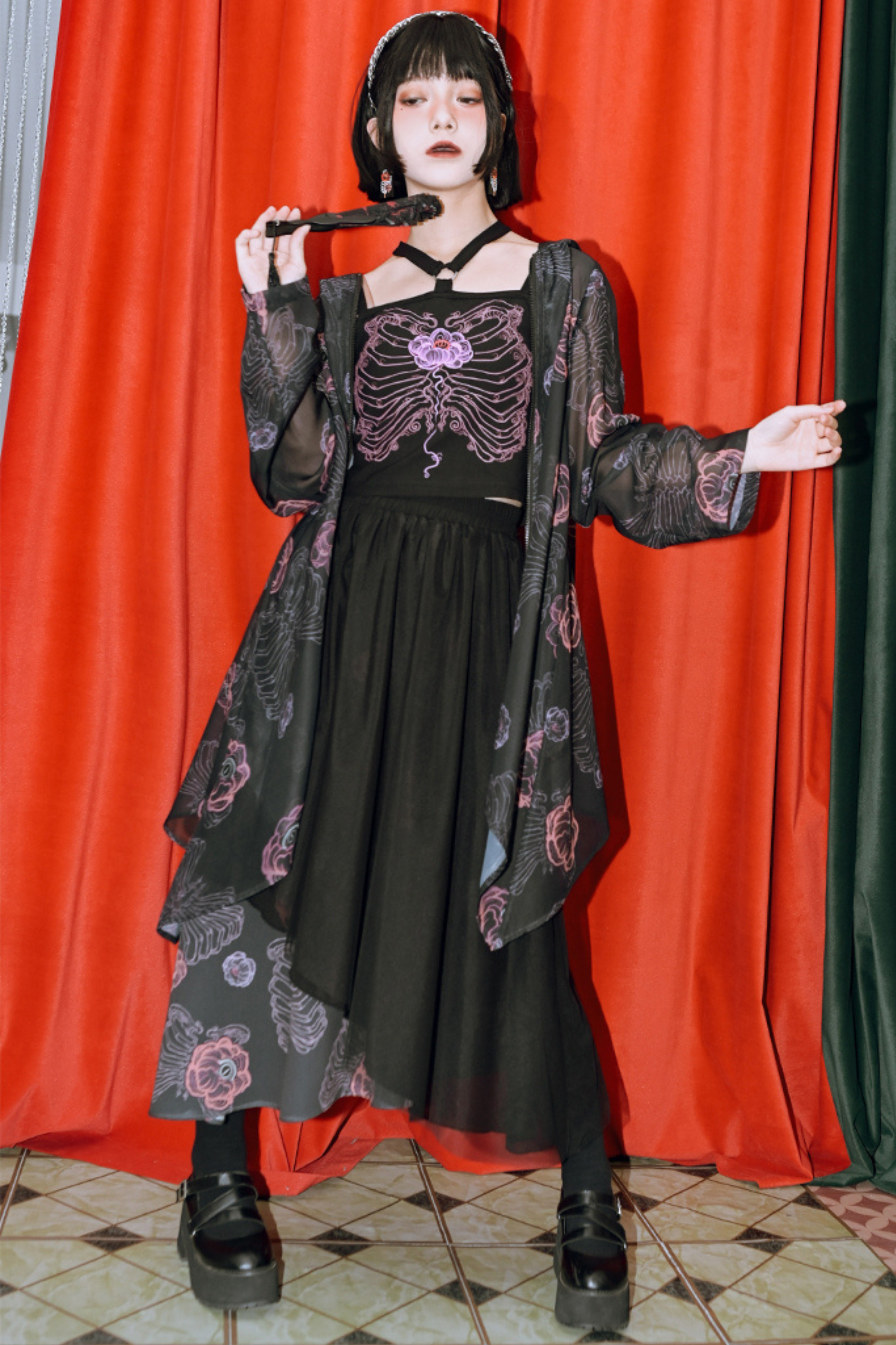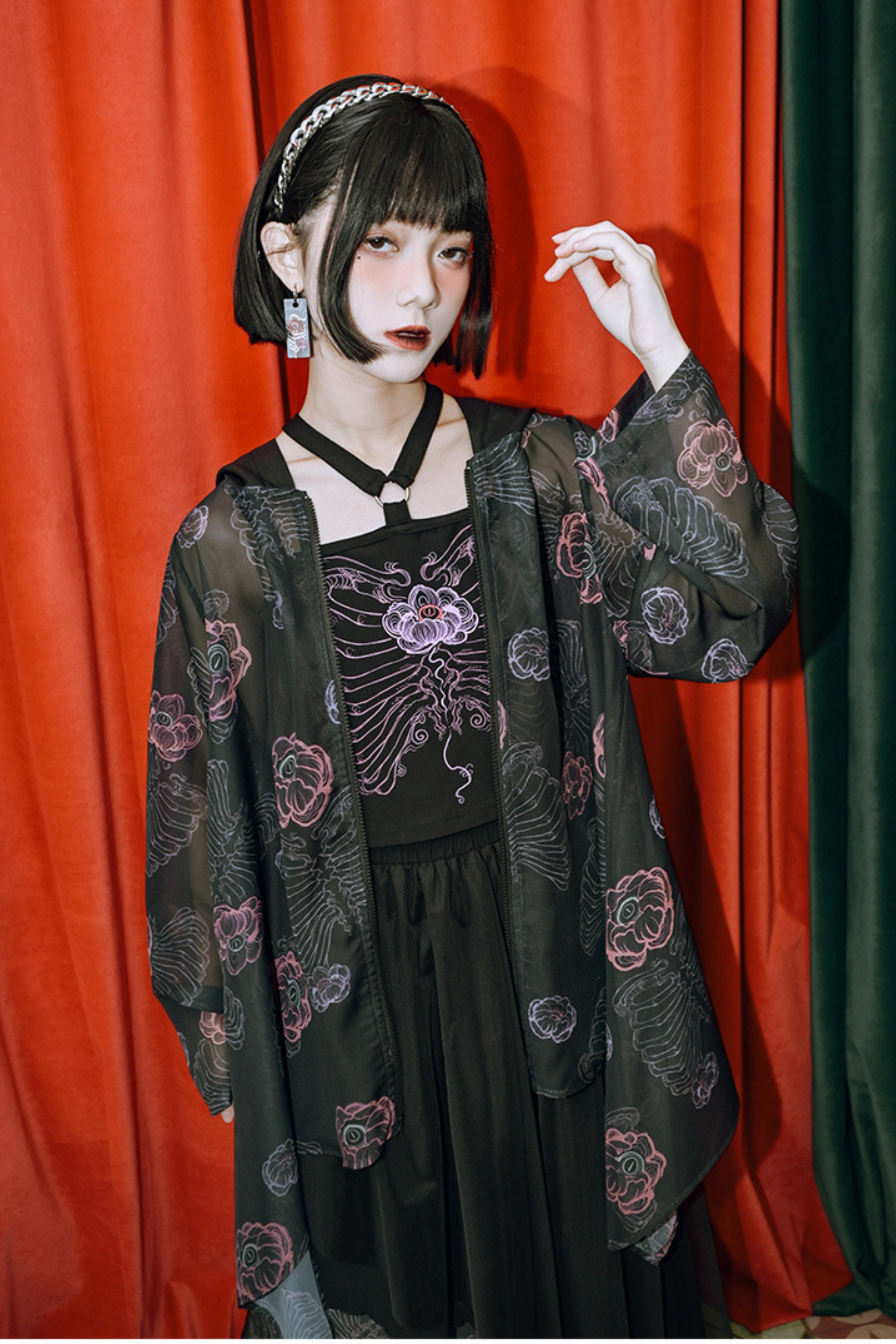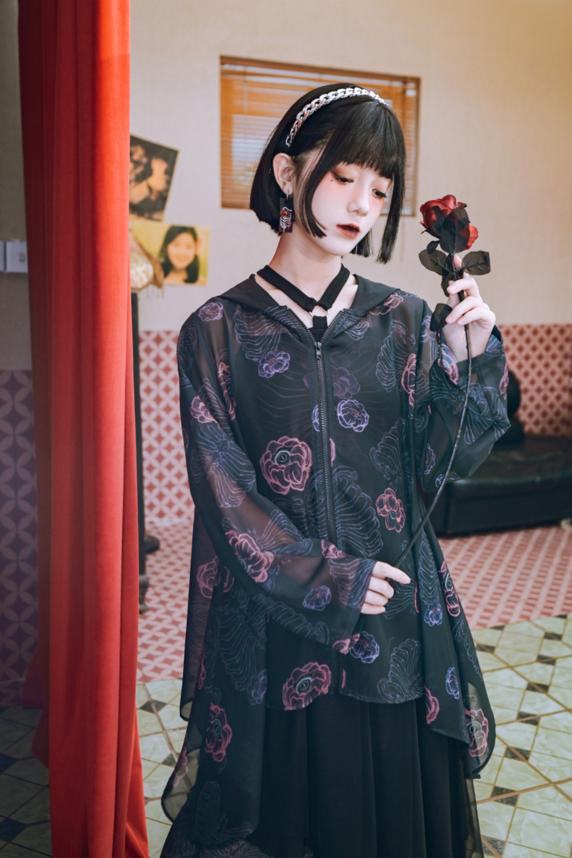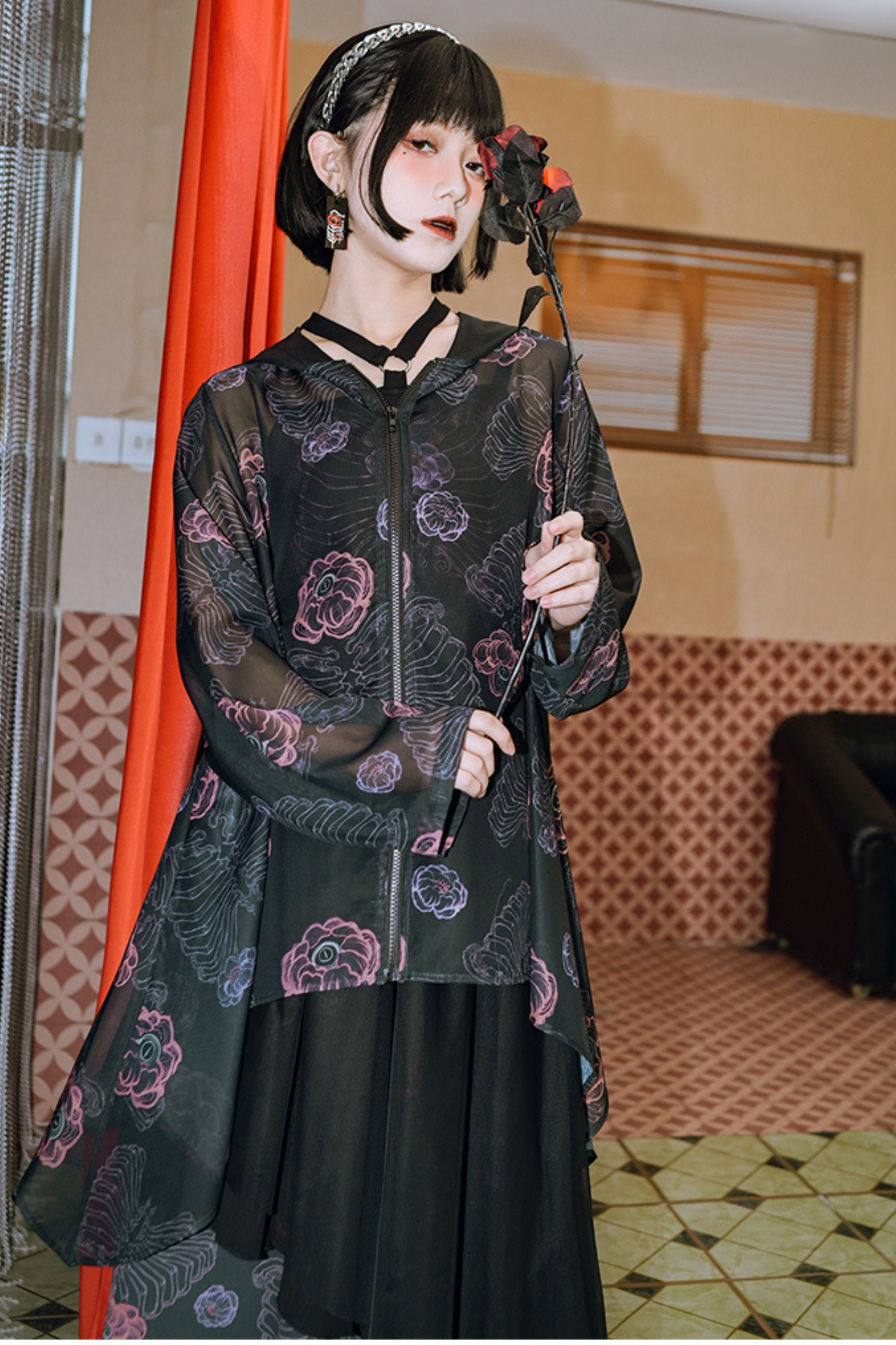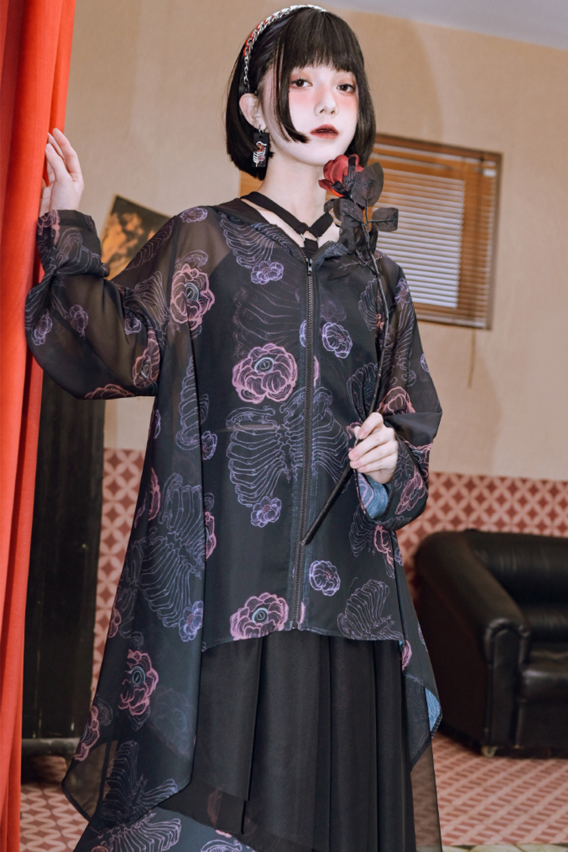 ❤フラワーボーンシフォンフード付きサンシャツ❤