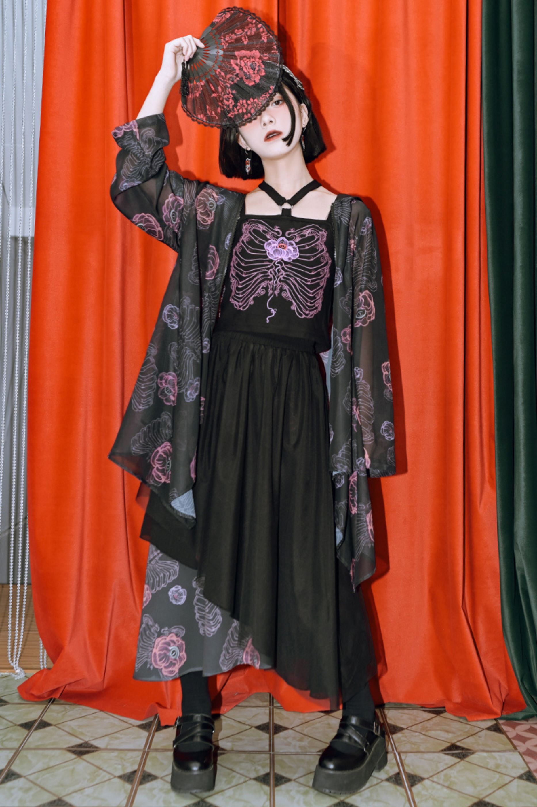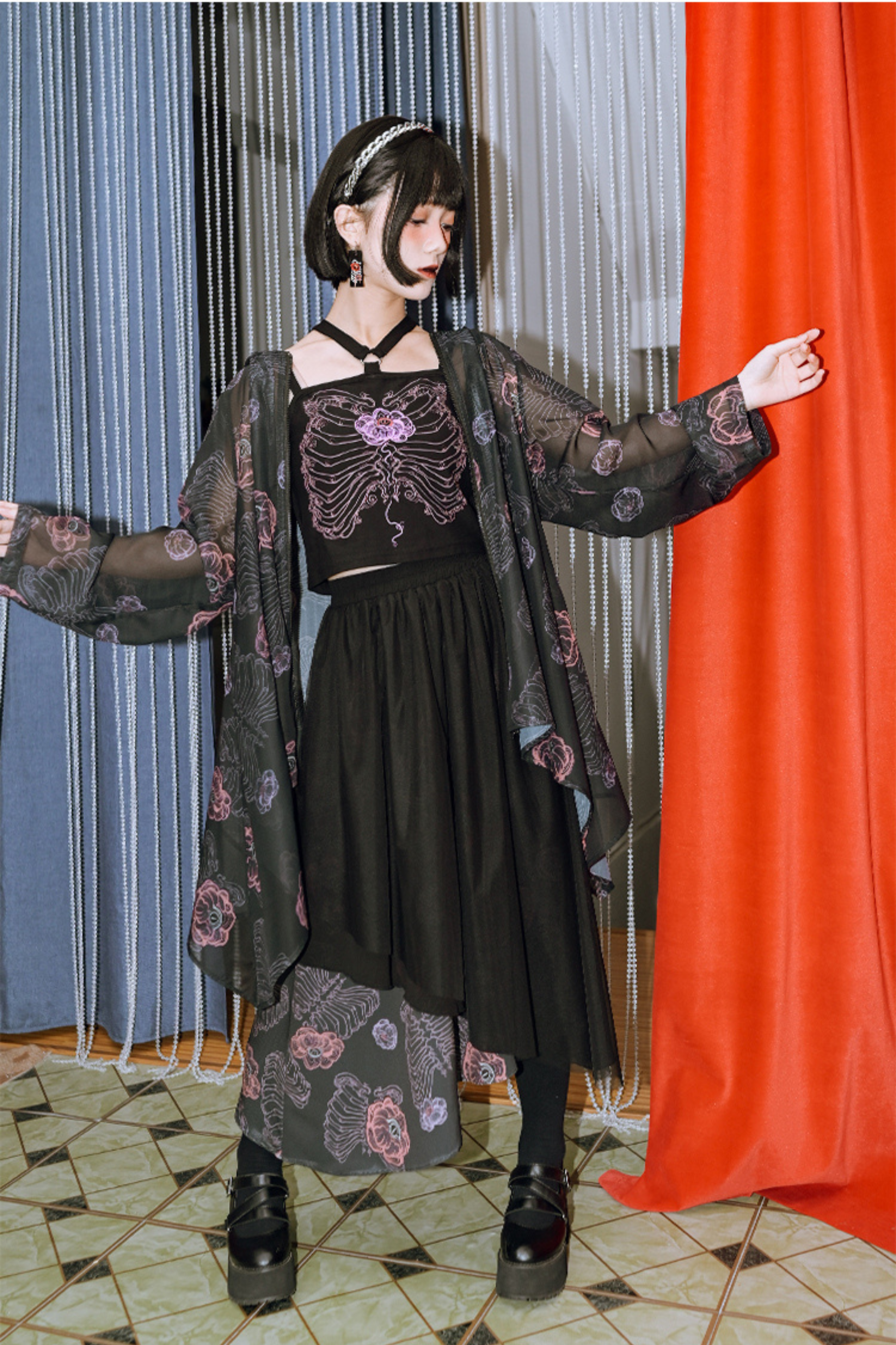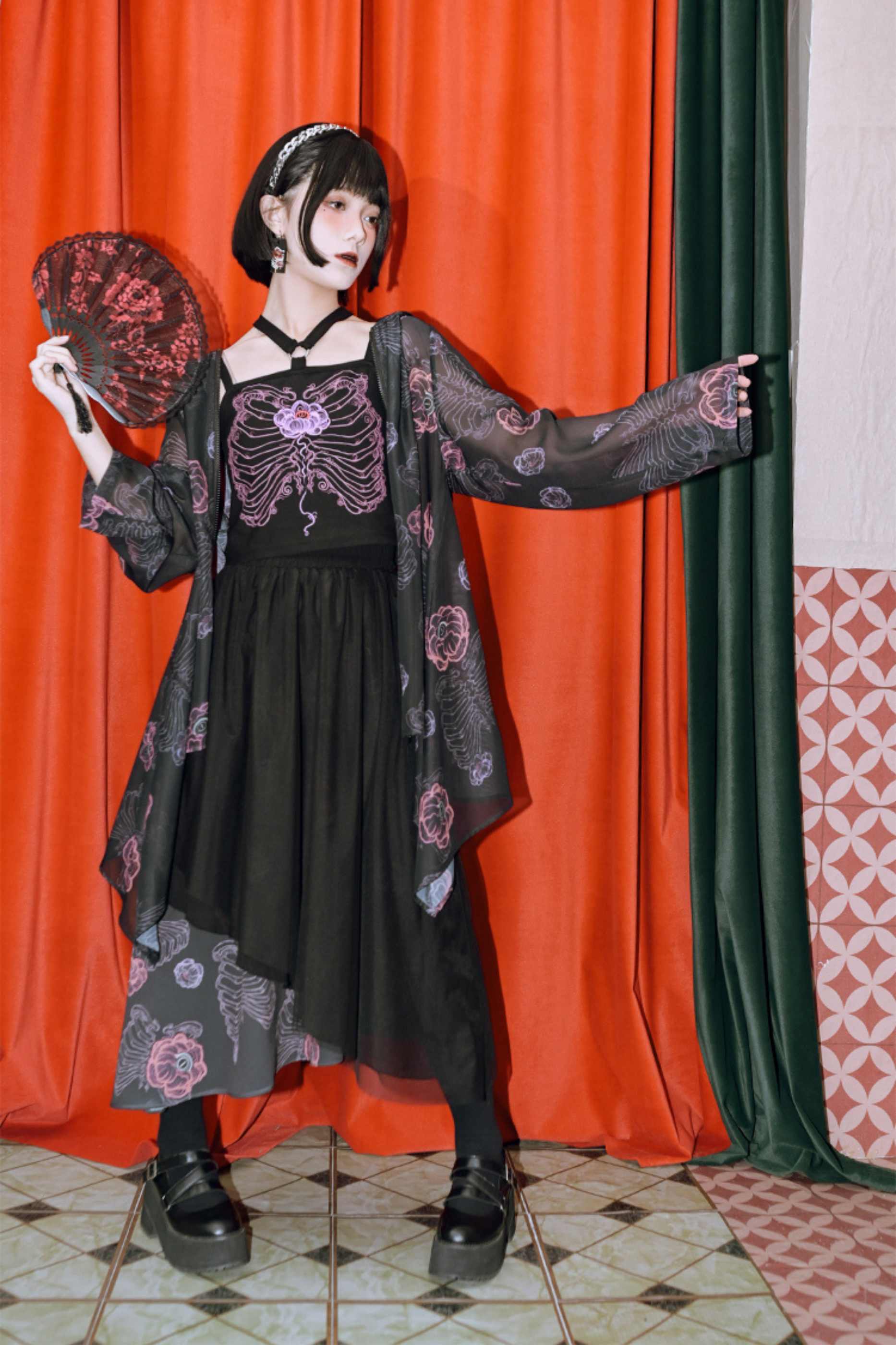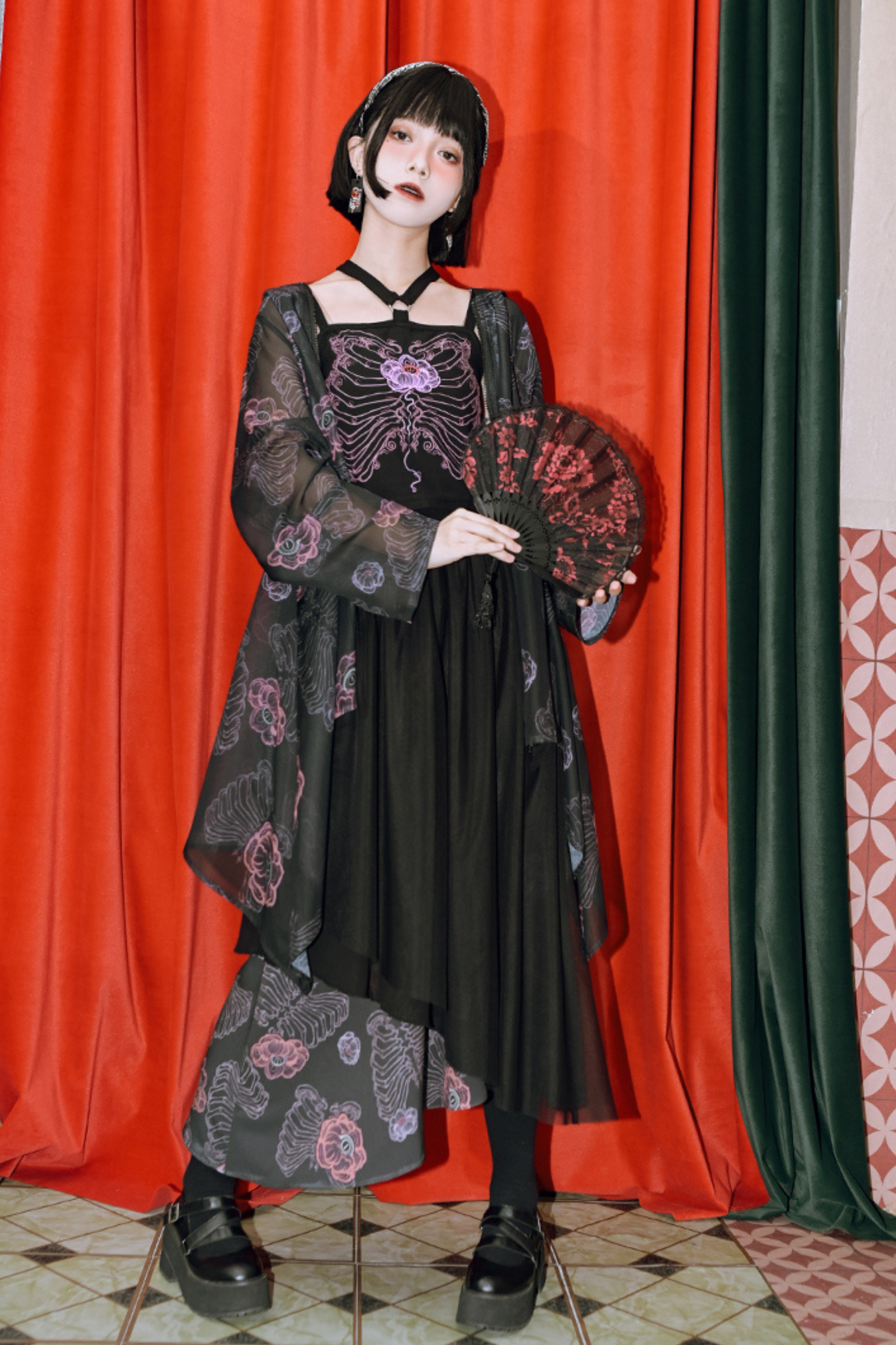 黒と白のオールドスクールロリータファッションドレス蝶結びロリータJSKセット