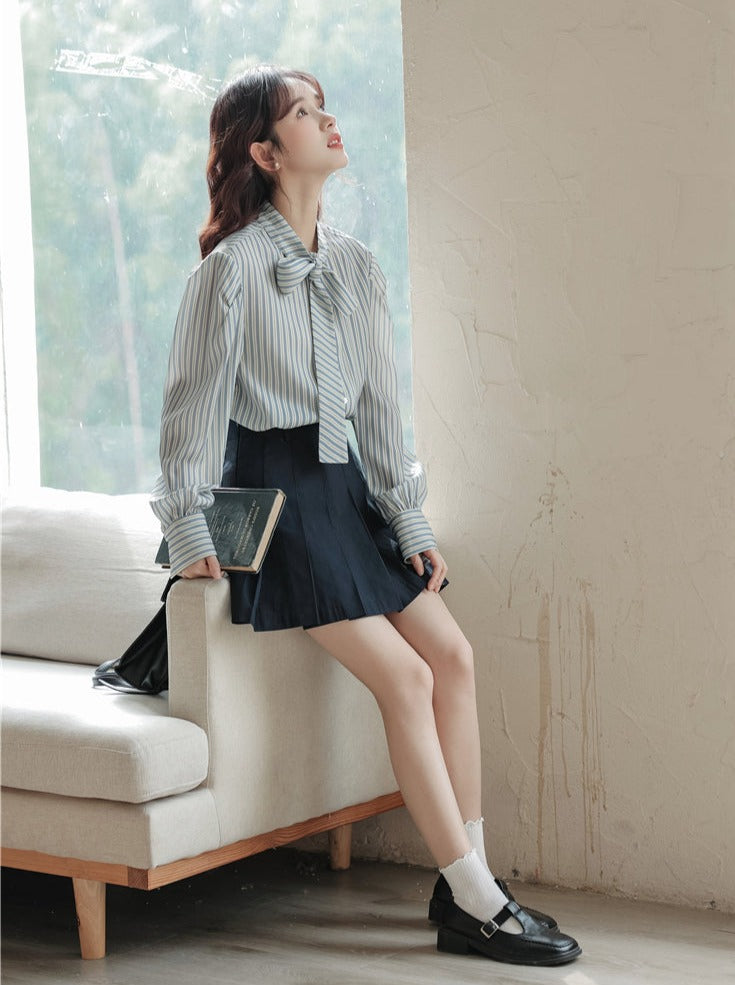 青と白のオールドスクールロリータファッションドレス 蝶結びディテール JSK セット