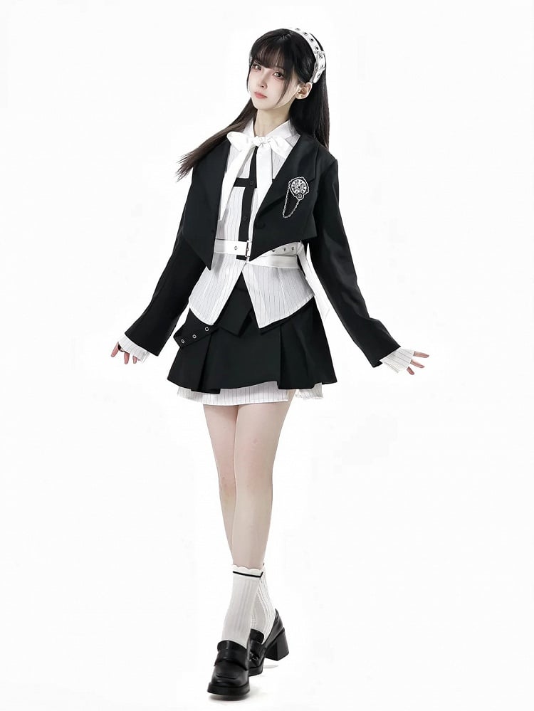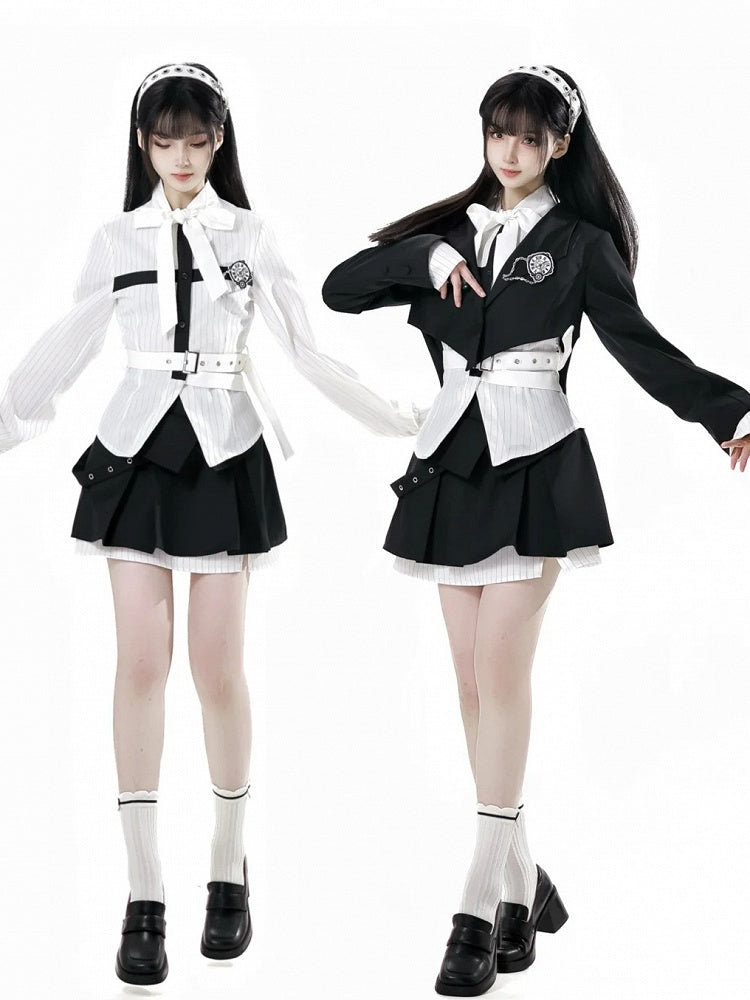 黒と白のオールドスクールロリータファッションドレス蝶結びロリータJSKセット