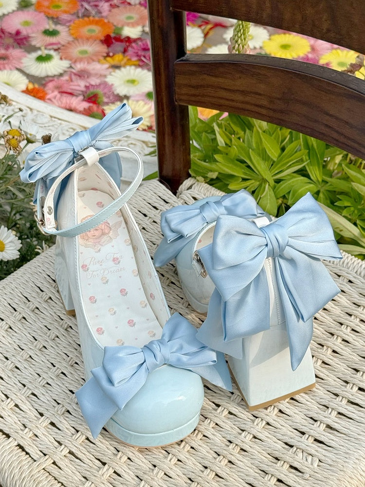 つま先リボンディテールのロリータラウンドメアリーブルースウィートジェーンズプラットフォームシューズ