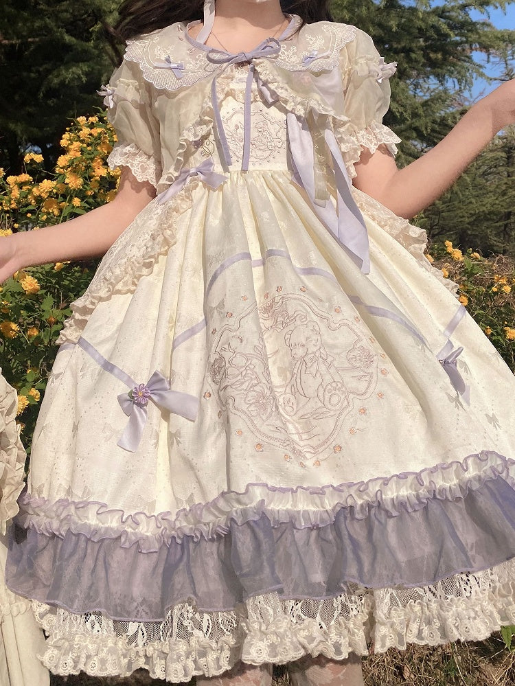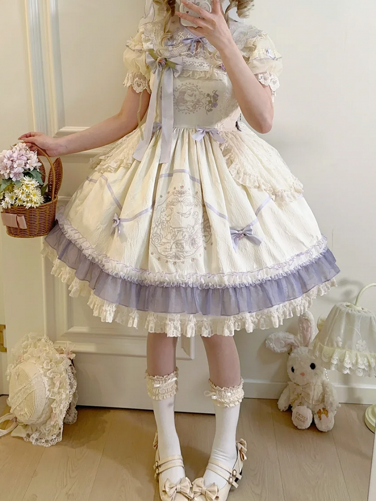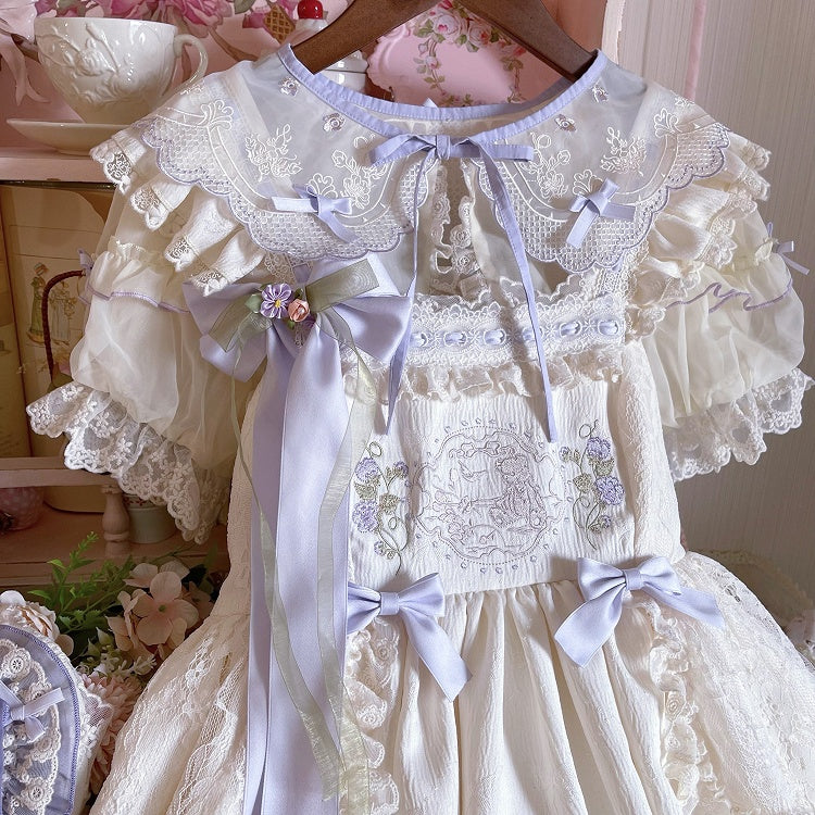 青と白のオールドスクールロリータファッションドレス 蝶結びディテール JSK セット