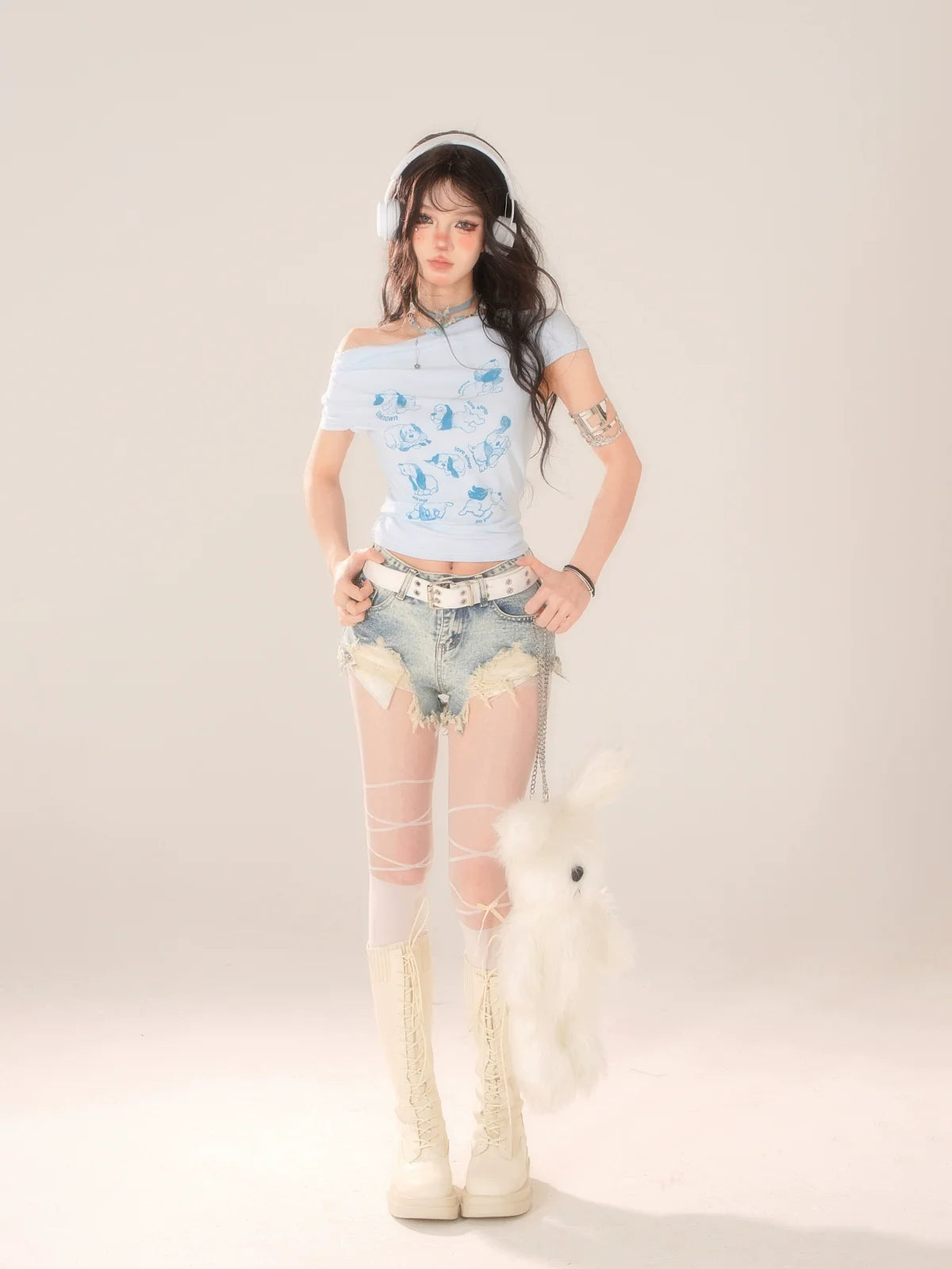 このキュートなダメージデニムショートパンツは、カジュアルながらもスタイリッシュなルックにぴったりです。上質なデニムを使用し、着心地と耐久性に優れています。あえてダメージ加工を施したデザインが、どんなコーディネートにも個性的な雰囲気を添えます。トレンドを先取りしたワードローブに欠かせないアイテムです。