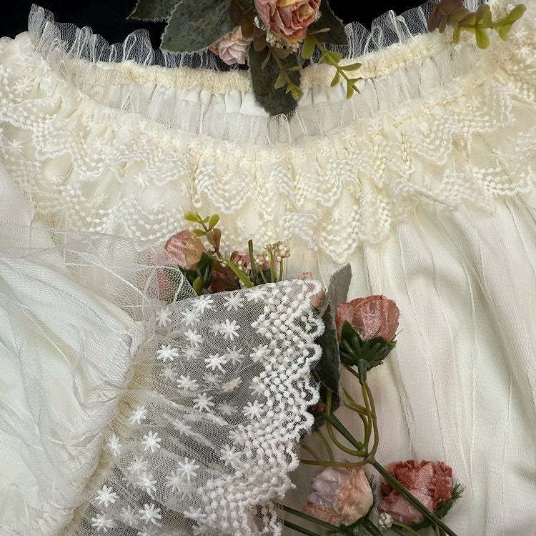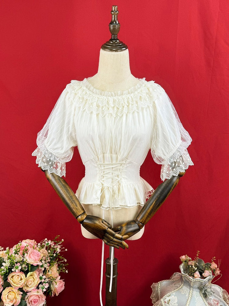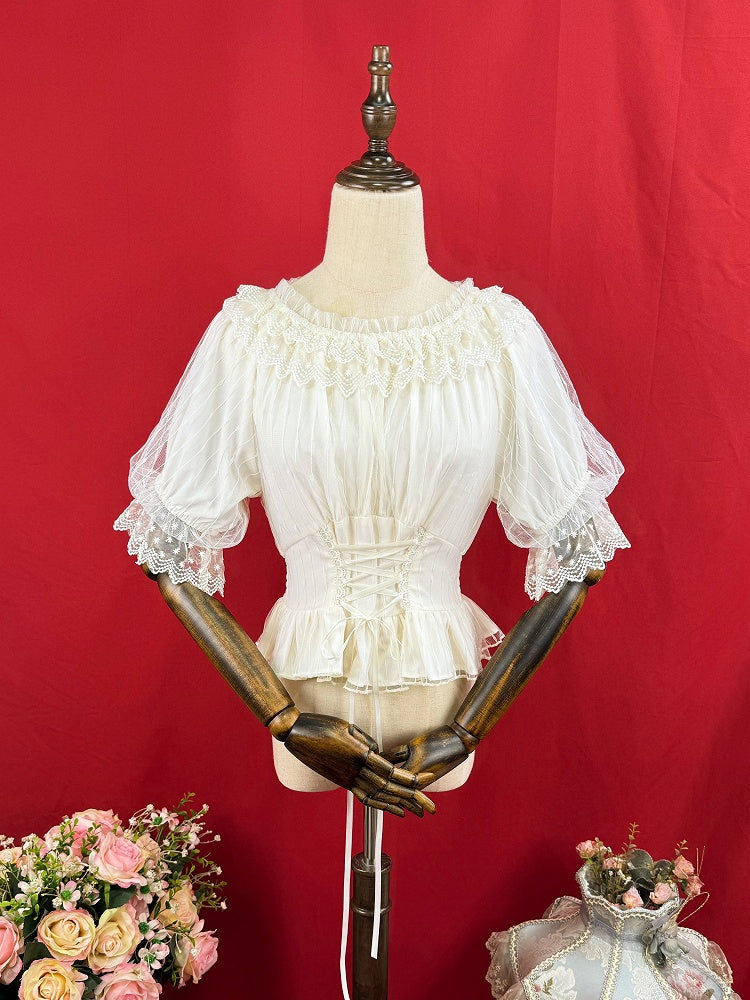 ショート丈伸縮性ブラウス ネックライン アプリコットスリーブ