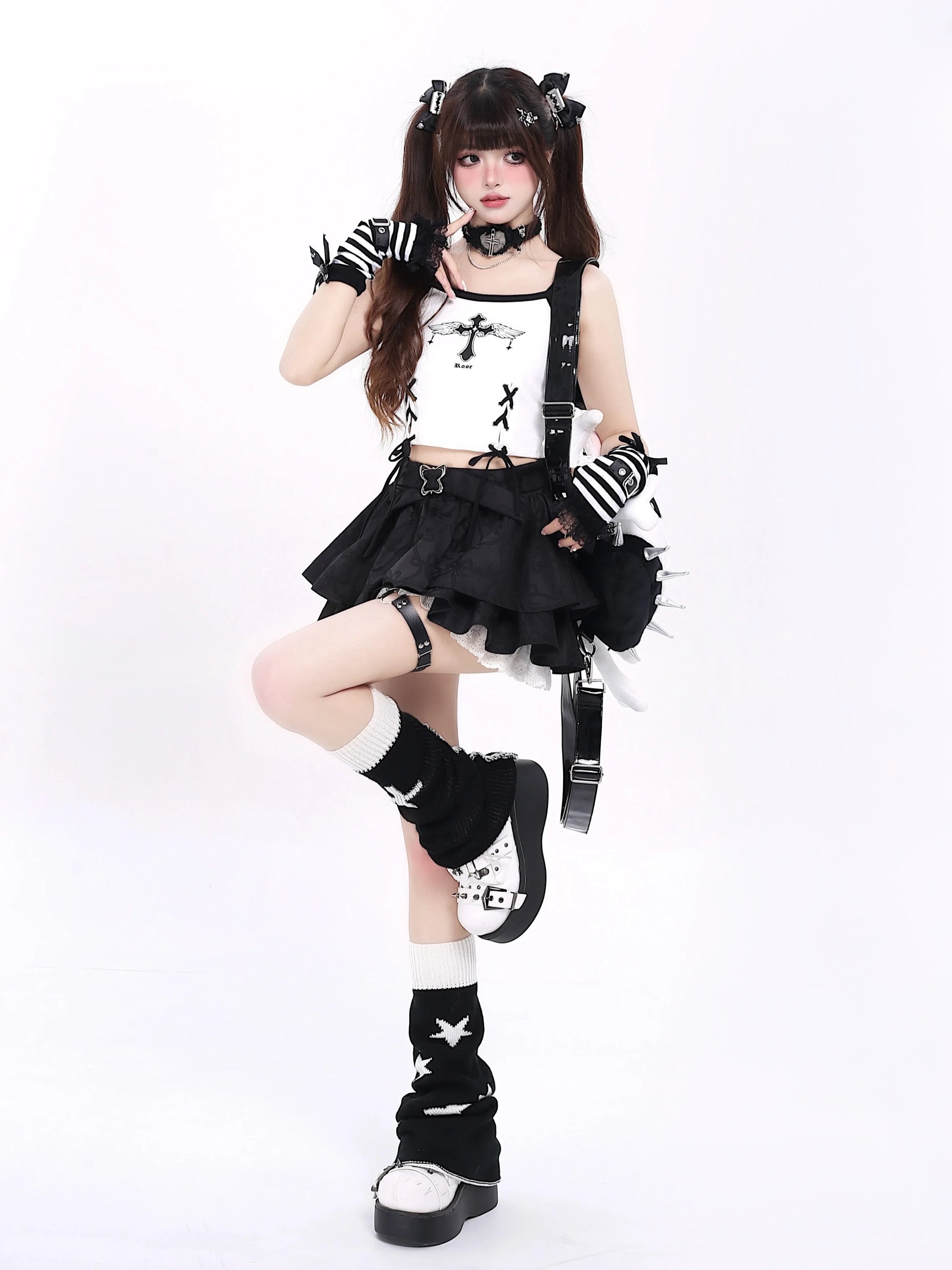 黒と白のオールドスクールロリータファッションドレス蝶結びロリータJSKセット