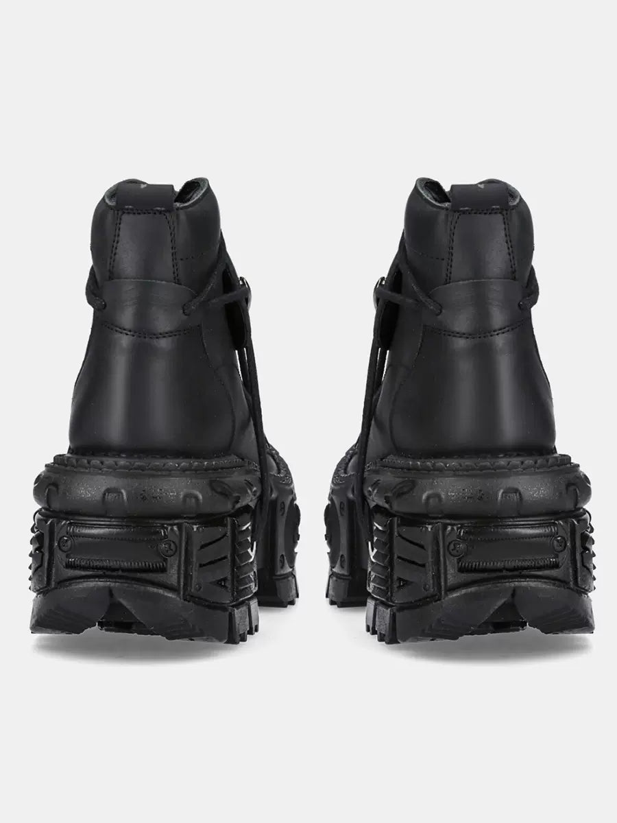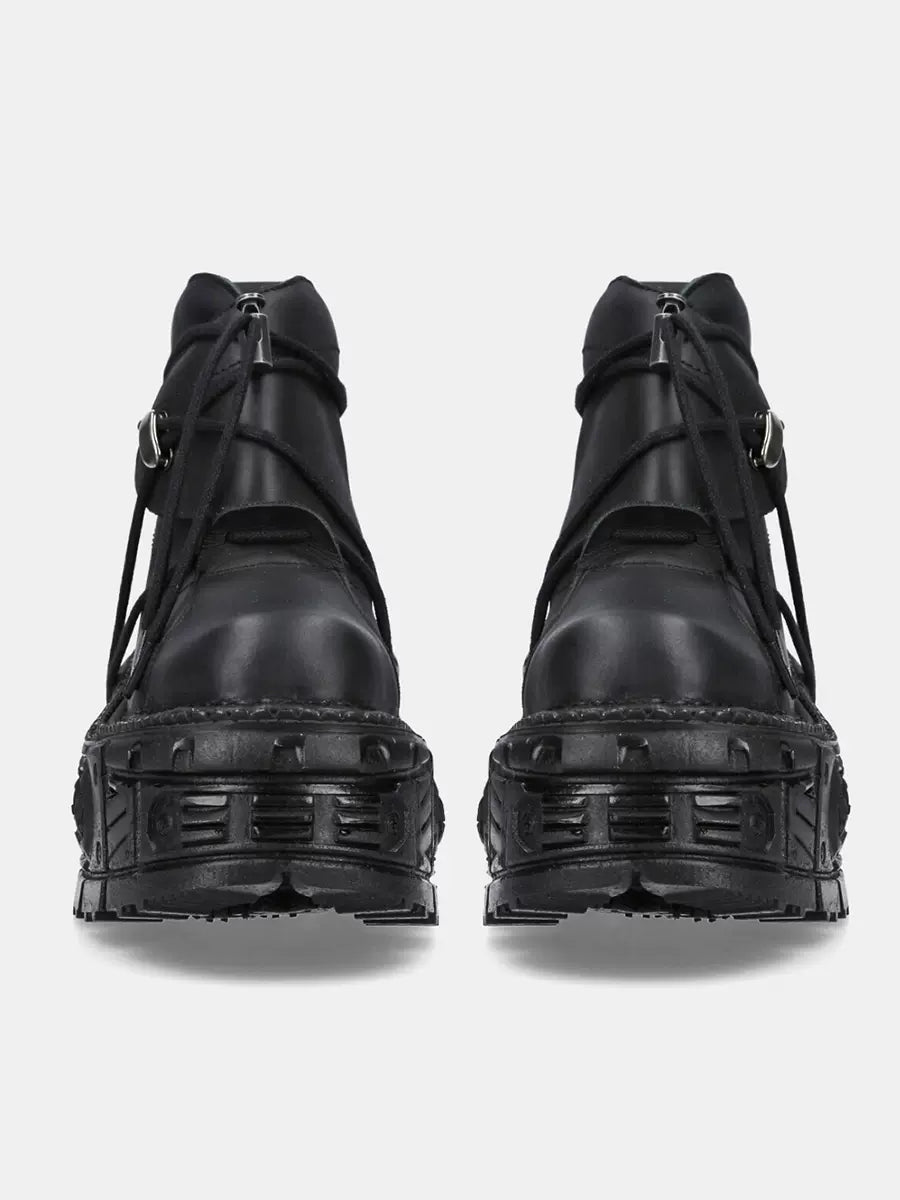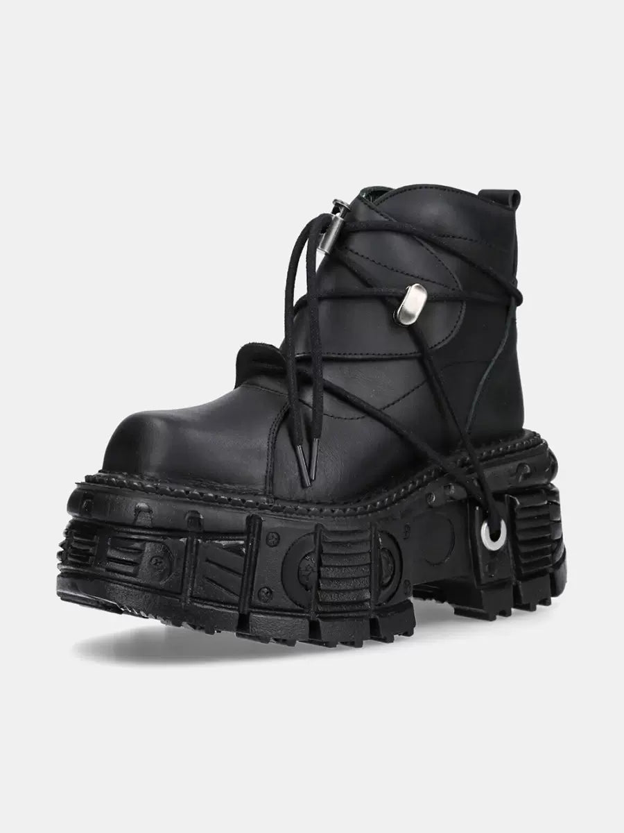 エッジの効いたスタイリッシュなルックを求める方にぴったりの、ショートプラットフォーム ダークメタル パンクブーツ。レースアップデザインが反骨精神を添え、ダークメタルのアクセントが個性的で目を引く魅力を放ちます。快適なプラットフォームで、キュートでありながらクールな印象も兼ね備えています。