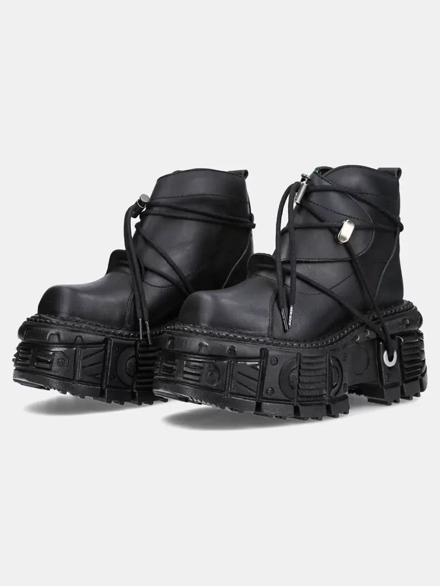 ショートプラットフォームダークメタルパンクブーツレースアップ