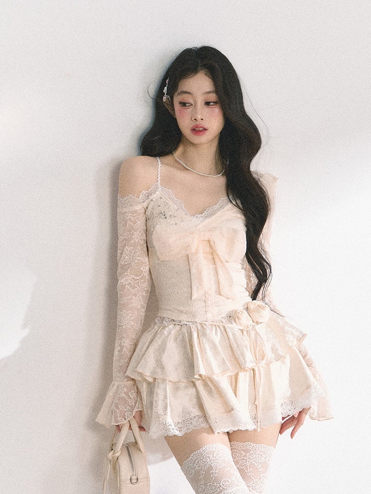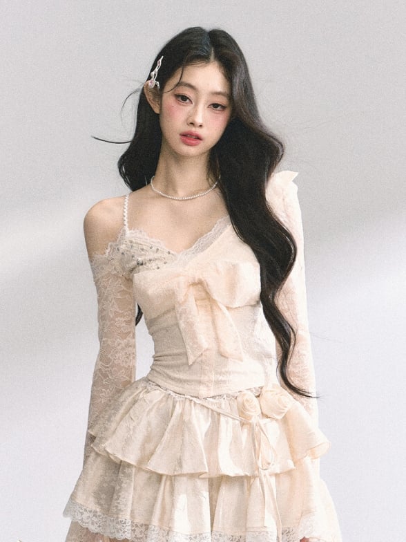● 大きなリボン / カットアウトショルダー / レーストリム