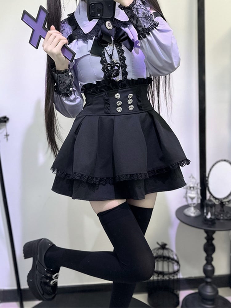 | Shoulder Kei Cutout Blouse with Dusty Purple Heart Decorative Look Buckle Jirai